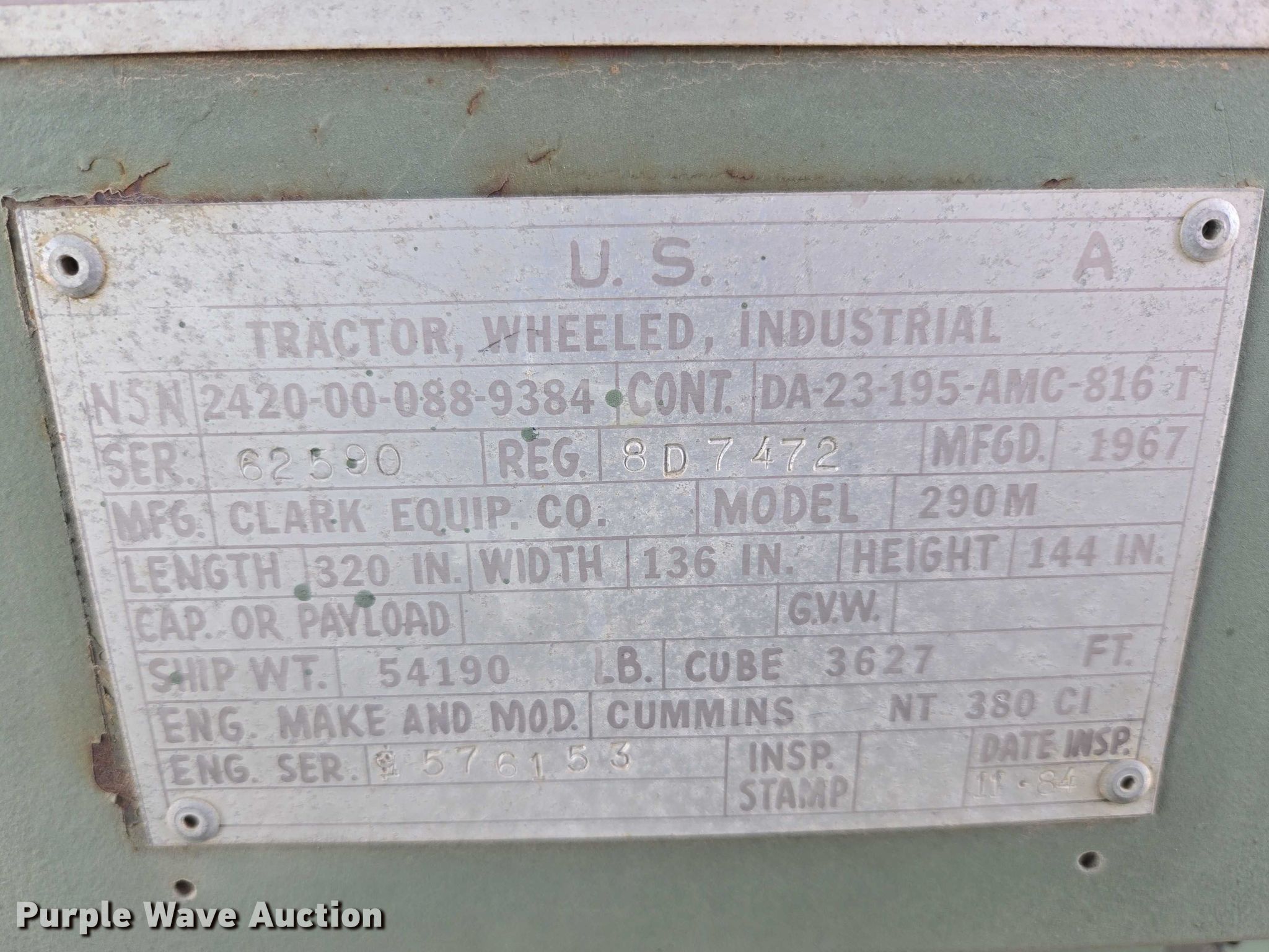 Purple Wave is selling a used Conventional Scraper in Minnesota. This item is a 1967 Clark 290M scraper with the following: Hours: 1,016 on meter, Serial: 62590