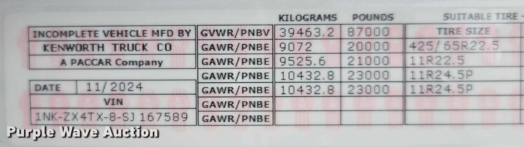 Take a look at this used 2025 Kenworth T880 dump truck being sold on March 26th, 2026 in the Thursday March 26 Construction Equipment Auction made by Kenworth. Take a look at all of the item information below or take a look at similar auctions for Construction Trucks.