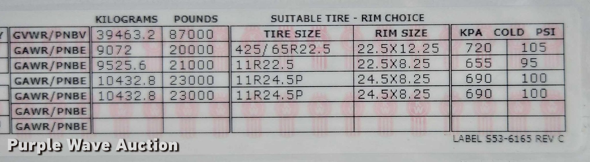 - GVWR: 87,000 lbs