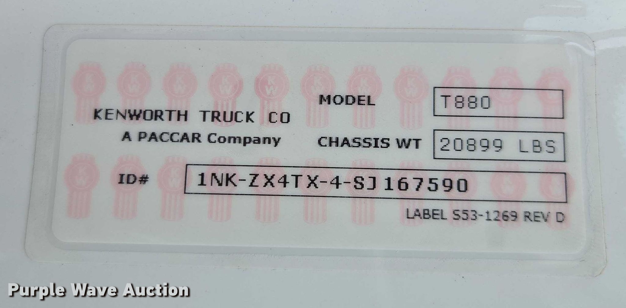 Take a look at this used 2025 Kenworth T880 dump truck being sold on March 26th, 2026 in the Thursday March 26 Construction Equipment Auction made by Kenworth. Take a look at all of the item information below or take a look at similar auctions for Construction Trucks.