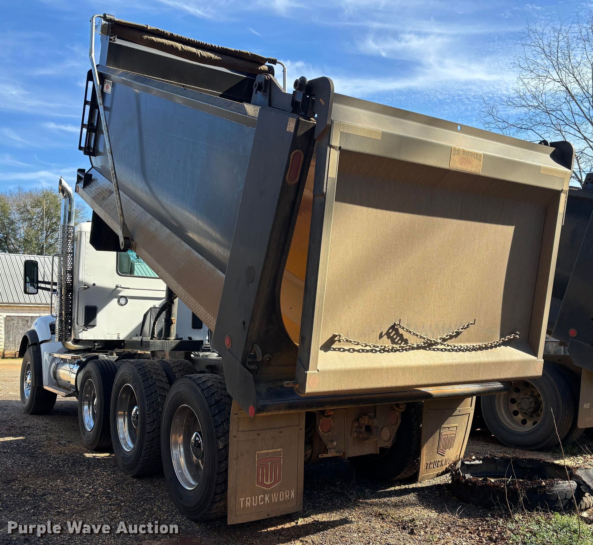 2025 Kenworth T880 dump truck. Miles: 14,531 on odometer, Hours: 492 on meter, VIN: 1NKZX4TX6SJ167591. Engine Cummins, Displacement: 15.0L, Cylinders: 6, Fuel type: Diesel. Transmission Allison, Automatic. Chassis Axles: Triple, Pusher axle. Features Bed Dump bed, Ox Bodies, Roll tarp, Ram: Single, End gate: Air operated. Additional images and description forthcoming. Alabama title. Title has a lien that will be released following the close of the auction. Title distribution may be delayed up to 30 days from verification of funds. Pickens County, AL. Carrollton, AL 35447