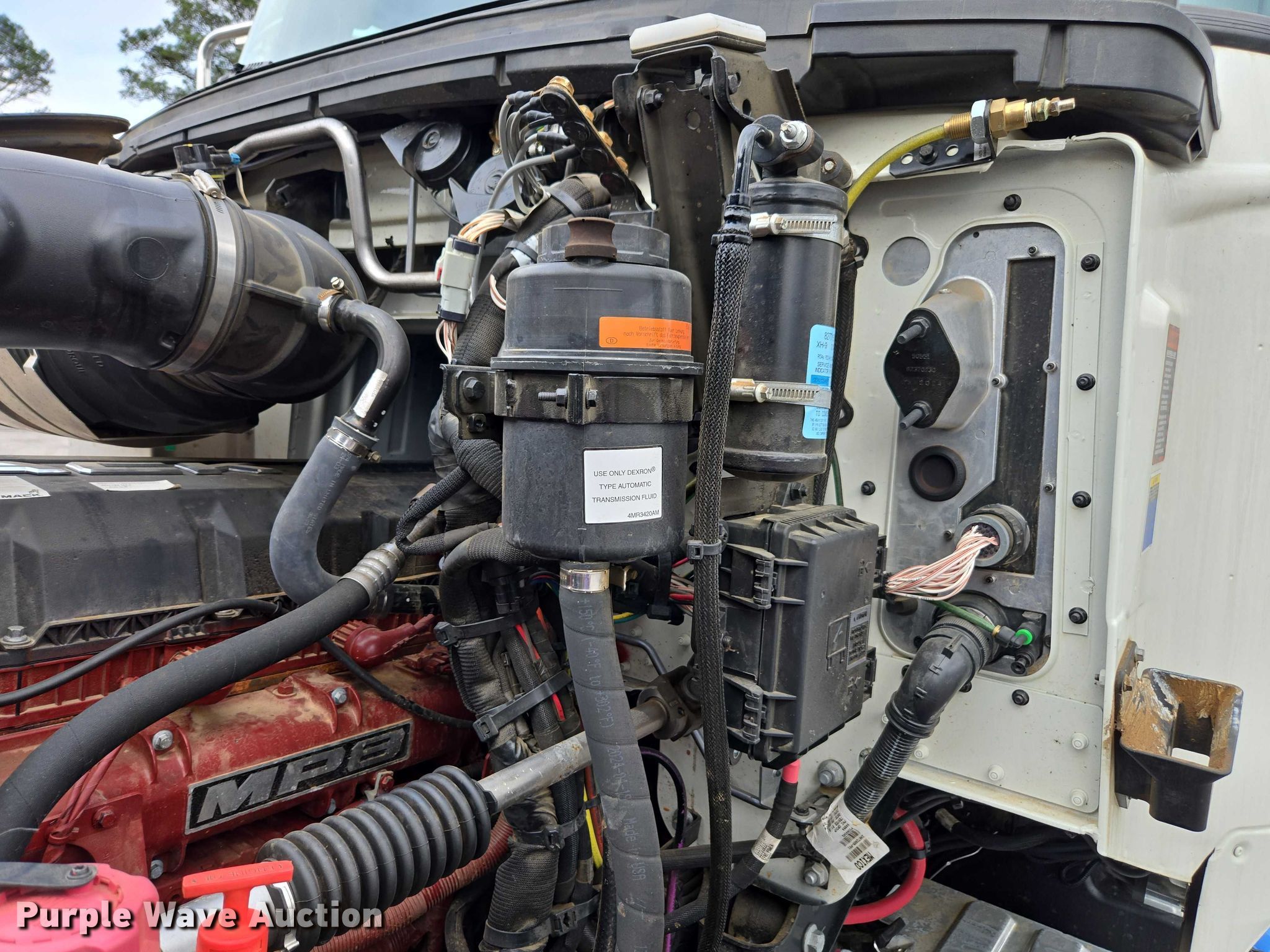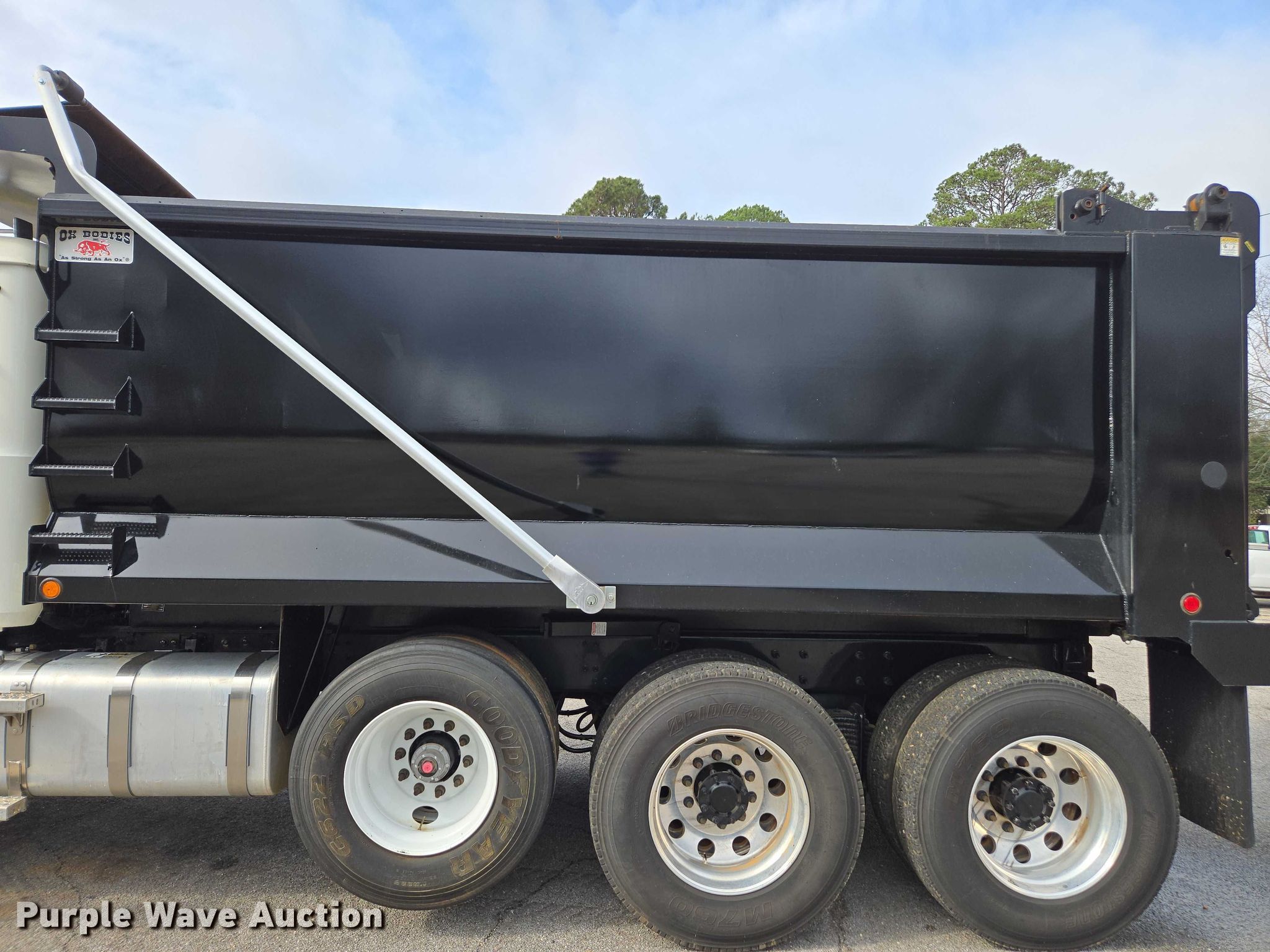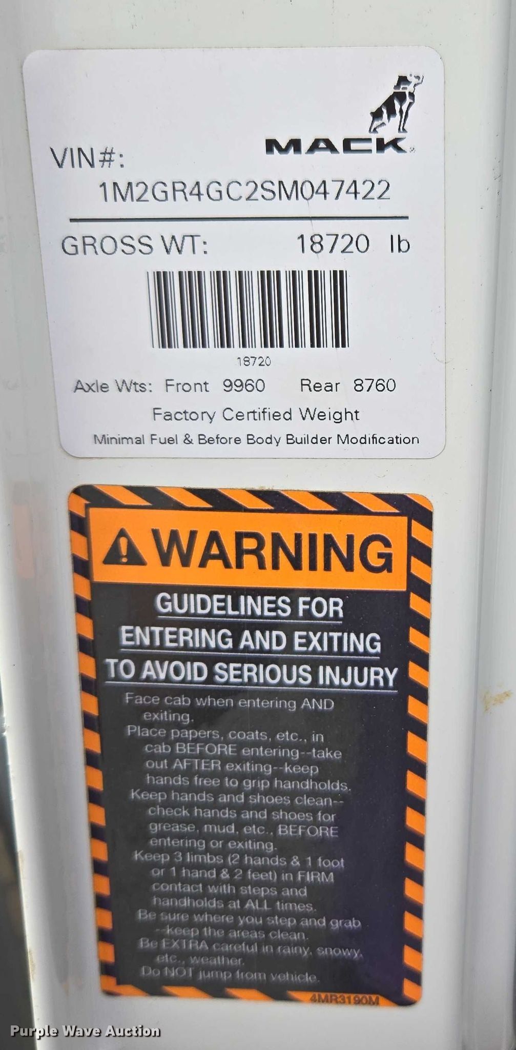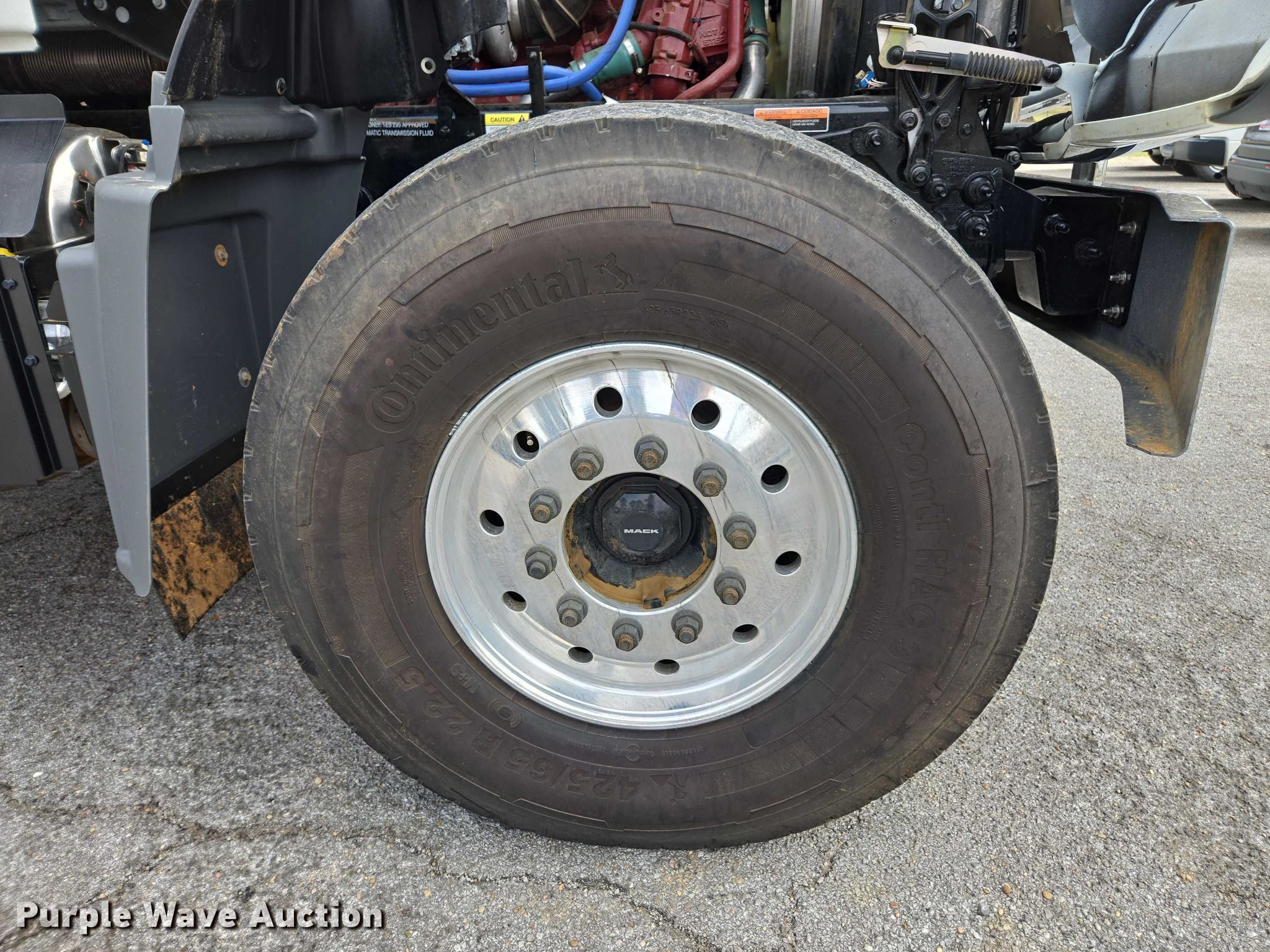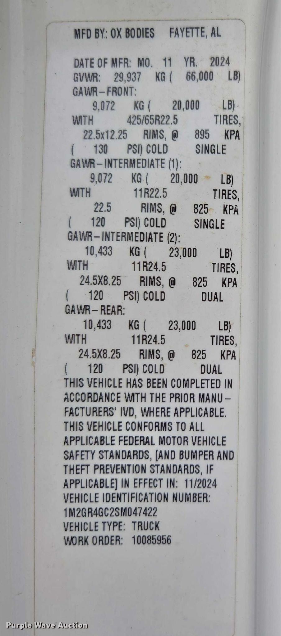 2025 Mack Granite dump truck. Miles: 3,963 on odometer, Hours: 174 on meter, VIN: 1M2GR4GC2SM047422. Engine Mack MP8, Displacement: 12.8L, Cylinders: 6, Fuel type: Diesel, Engine brake. Transmission Allison, Automatic. Chassis Axles: Triple, Pusher axle, Differential lock: Full, Suspension: Camelback, Brakes: Air, PTO, GVWR: 86,000 lbs FAWR: 20,000 lbs, IAWR: 23,000 lbs, RAWR: 23,000 lbs, Lift axle GAWR: 20,000 lbs. Interior AC, Heat, Heated mirrors, Power windows, Cruise control, Power locks. Features Bed Dump bed, Ox Bodies 21/22YD, Length: 16', Width: 98", Side height: 60", Bed type: Steel, Bed vibrator, Roll tarp, Ram: Single, End gate: Air operated. Tires Front: 425/65R22.5, Rear: 11R24.5, Lift axle: 11R22.5. Alabama title. Title distribution may be delayed up to 30 days from verification of funds. Pickens County, AL. Carrollton, AL 35447