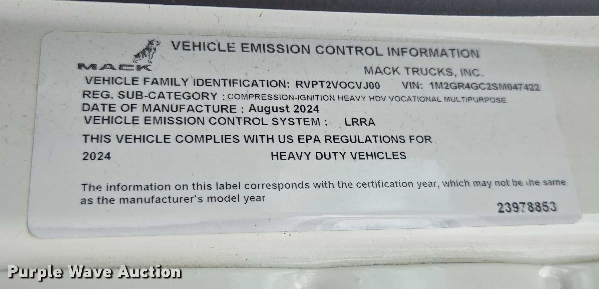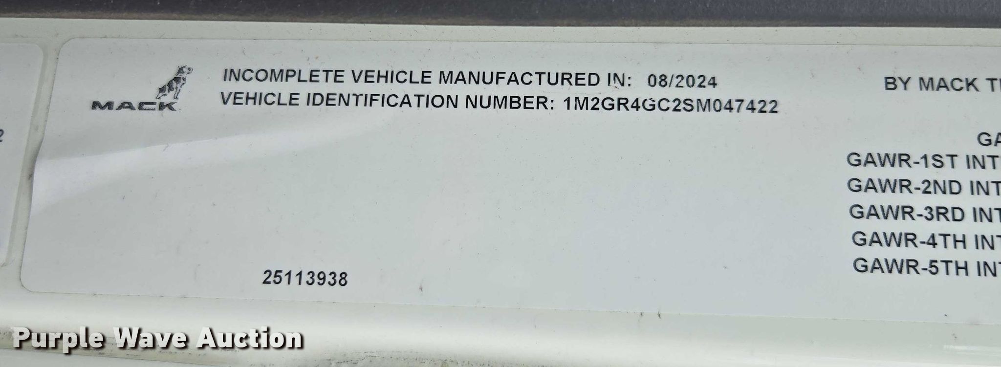 Take a look at this used 2025 Mack Granite dump truck being sold on March 26th, 2026 in the Thursday March 26 Construction Equipment Auction made by Mack. Take a look at all of the item information below or take a look at similar auctions for Construction Trucks.