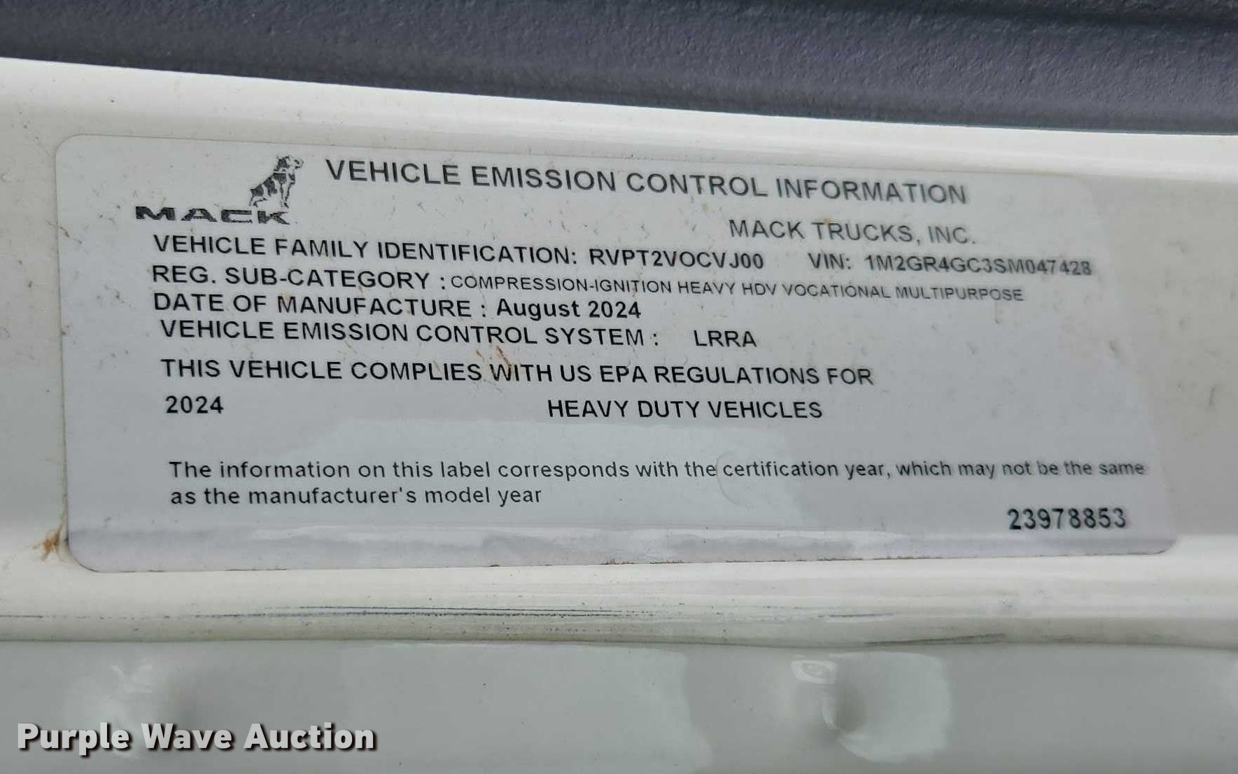 Take a look at this used 2025 Mack Granite dump truck being sold on March 26th, 2026 in the Thursday March 26 Construction Equipment Auction made by Mack. Take a look at all of the item information below or take a look at similar auctions for Construction Trucks.