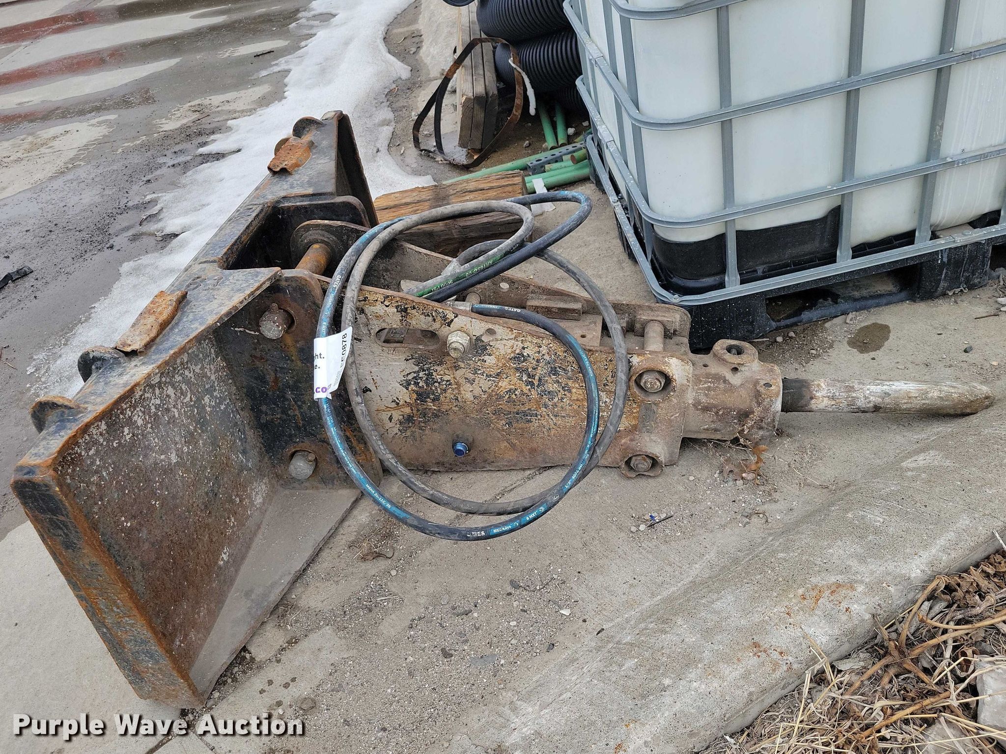 Purple Wave is selling a used Skid Steer Attach. in Iowa. This item is a Skid steer breaker with the following: Skid steer breaker. TK Concrete Inc. Pella, IA 50219