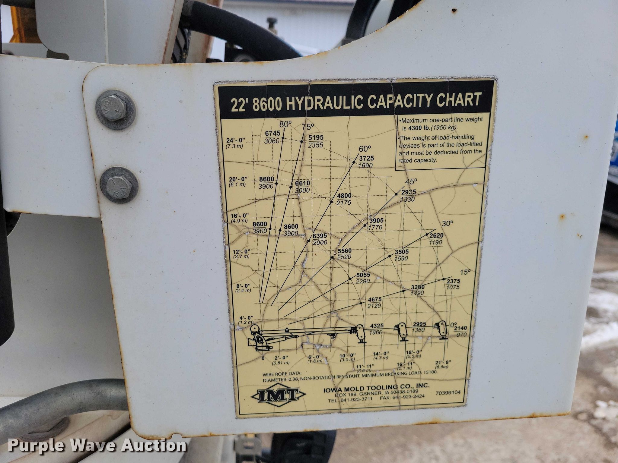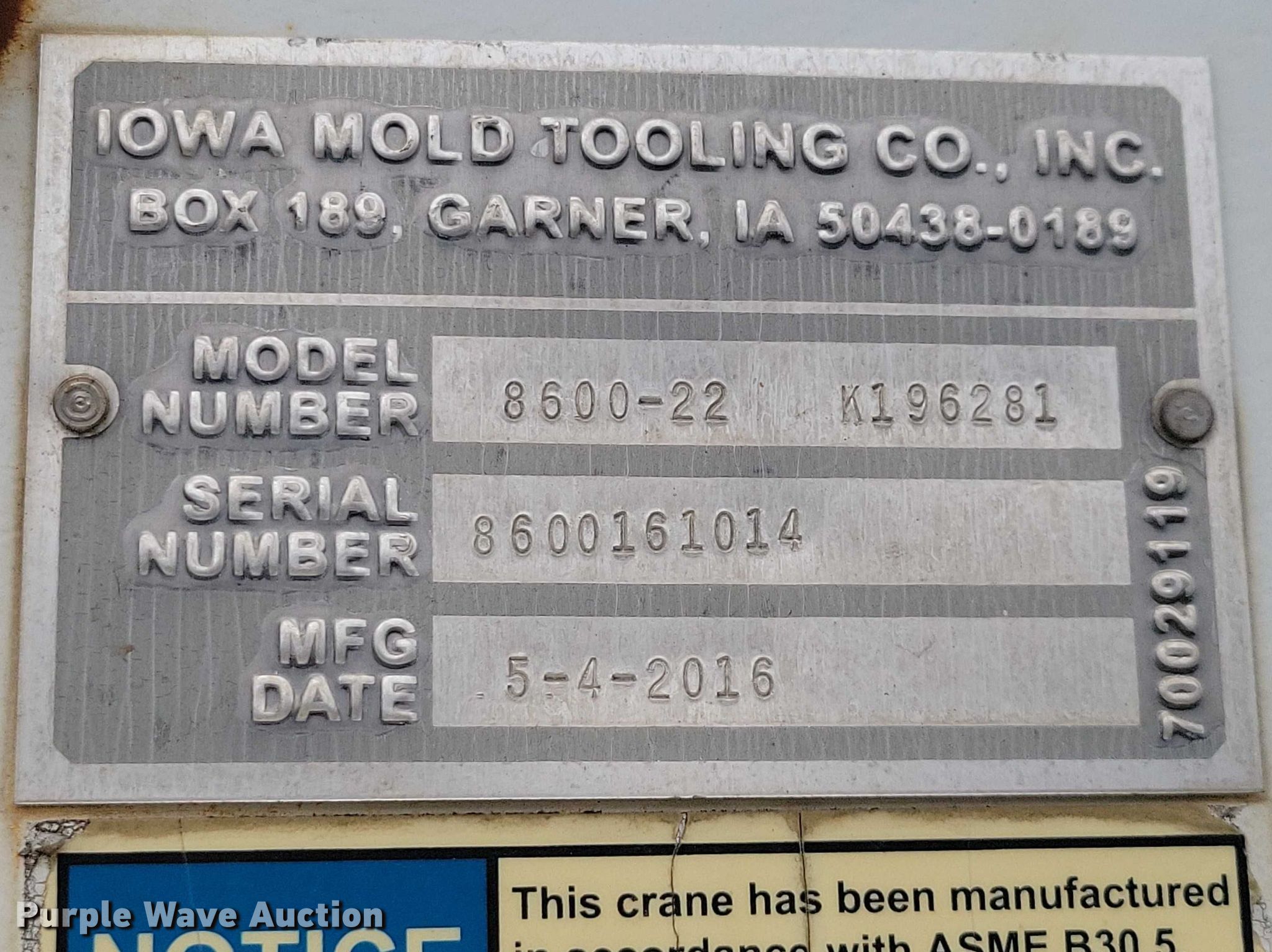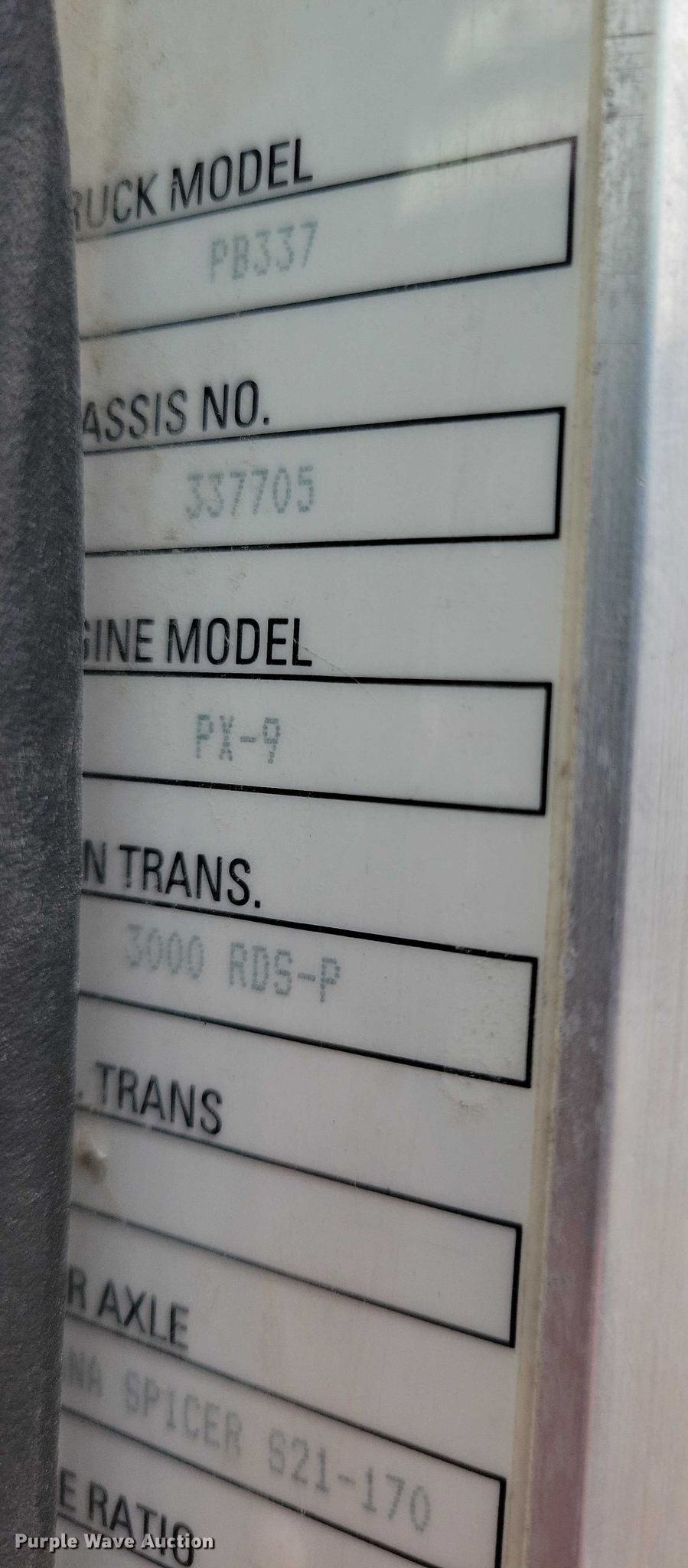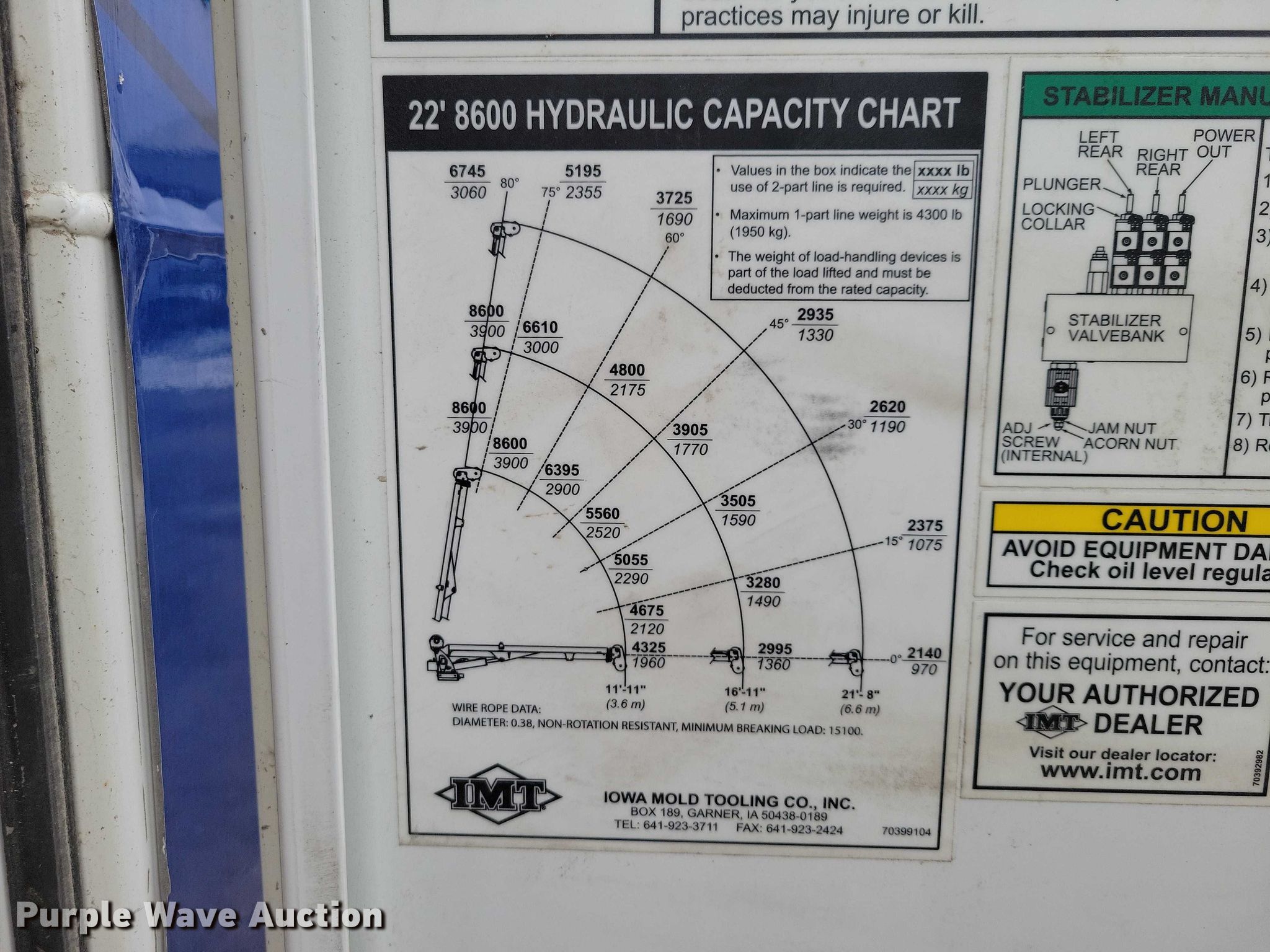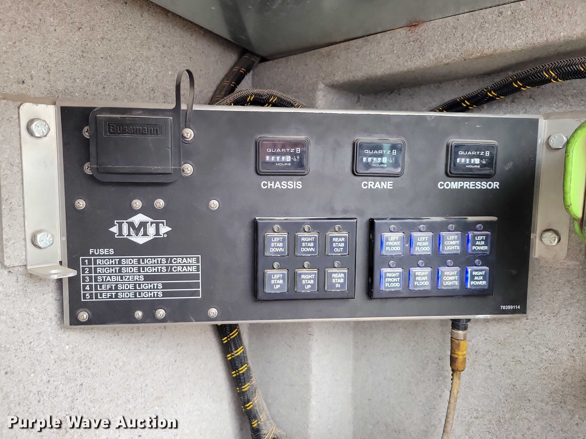 2016 Peterbilt 337 utility / service truck. Miles: 183,116 on odometer, Hours: 5,670 on meter, VIN: 2NP2HJ7X0GM337705. Engine Paccar PX-9, Serial: 73843168, Displacement: 8.9L, Cylinders: 6, Fuel type: Diesel. Transmission Allison, Automatic. Chassis Axles: Single, Suspension: Spring, Brakes: Air, PTO, GVWR: 33,000 lbs. Interior AC, Heat, Heated mirrors, Power windows, Power locks, Cruise control, Brake controller. Features Bed Utility bed, IMT K196280, Serial: DOM2S3161147, Length: 11', Width: 94", Torch bottle rack, Air compressor IMT CAS80R, Crane IMT 8600, Maximum boom length: 22' Maximum lift capacity: 8,600 lbs.. Tires Size: 11R24.5. Iowa title. Title distribution may be delayed up to 14 days from verification of funds. TK Concrete Inc. Pella, IA 50219