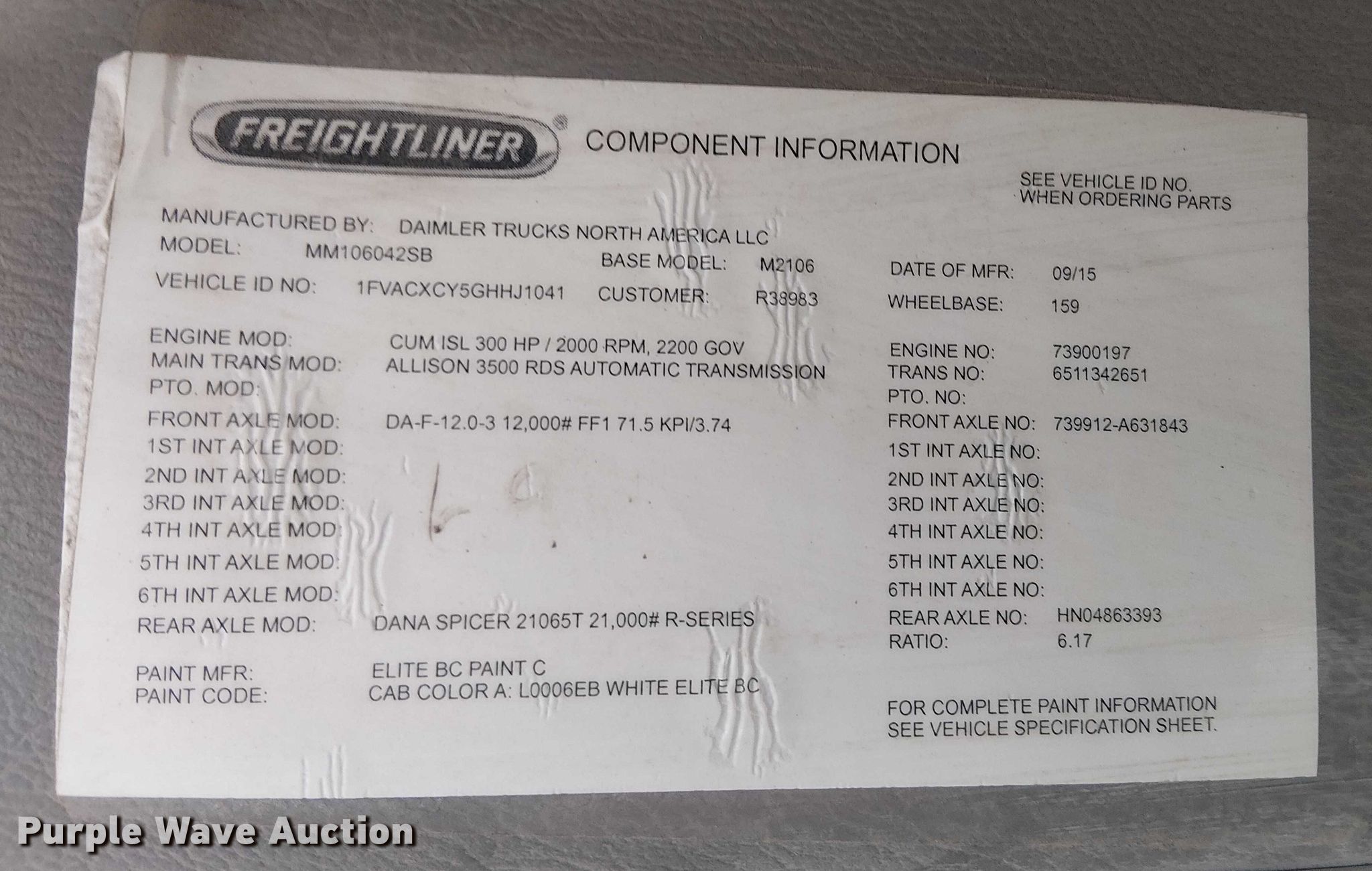 - VIN: 1FVACXCY5GHHJ1041