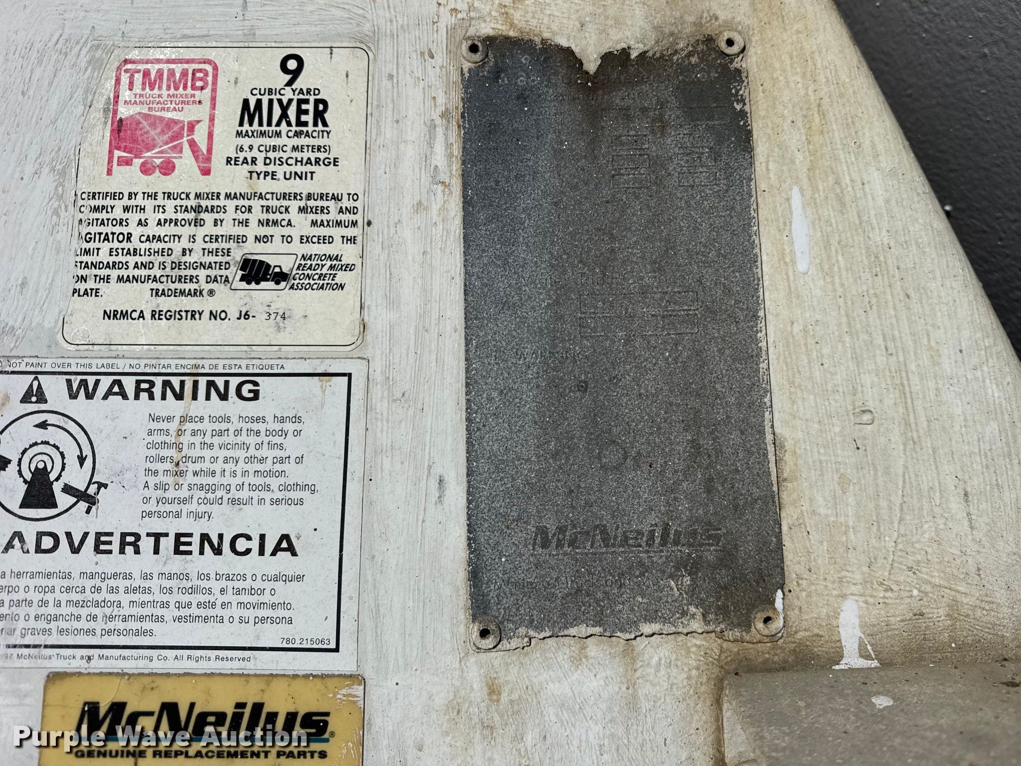 2003 Sterling L-Line ready mix truck. Miles: 140,243 on odometer, Hours: 15,546 on meter, VIN: 2FZHAWBS03AK33597. Engine Cummins ISC, Displacement: 8.3L, Cylinders: 6, Fuel type: Diesel. Transmission Eaton Fuller Roadranger RTO-9 MLL, Manual, Speed: 11. Chassis Axles: Tandem, Differential lock: Full, Suspension: Spring over walking beam, Brakes: Air, PTO, Front mount PTO, GVWR: 60,000 lbs FAWR: 20,000 lbs, IAWR: 20,000 lbs, RAWR: 20,000 lbs. Interior AC, Heat, Heated mirrors, Power windows, Cruise control. Features Mixer McNeilus, Capacity: 9 cu.yd., Discharge: Rear, In-cab controls, Rear drum controls, Water tank capacity: 125 gallons, Chute Extensions: 3, Chute type: Steel.. Tires Front: 425/65R22.5, Rear: 11R22.5. Notes Dash warning indicator: Engine warning. Illinois title. Title distribution may be delayed up to 14 days from verification of funds. All American Ready Mix. Springfield, IL 62702