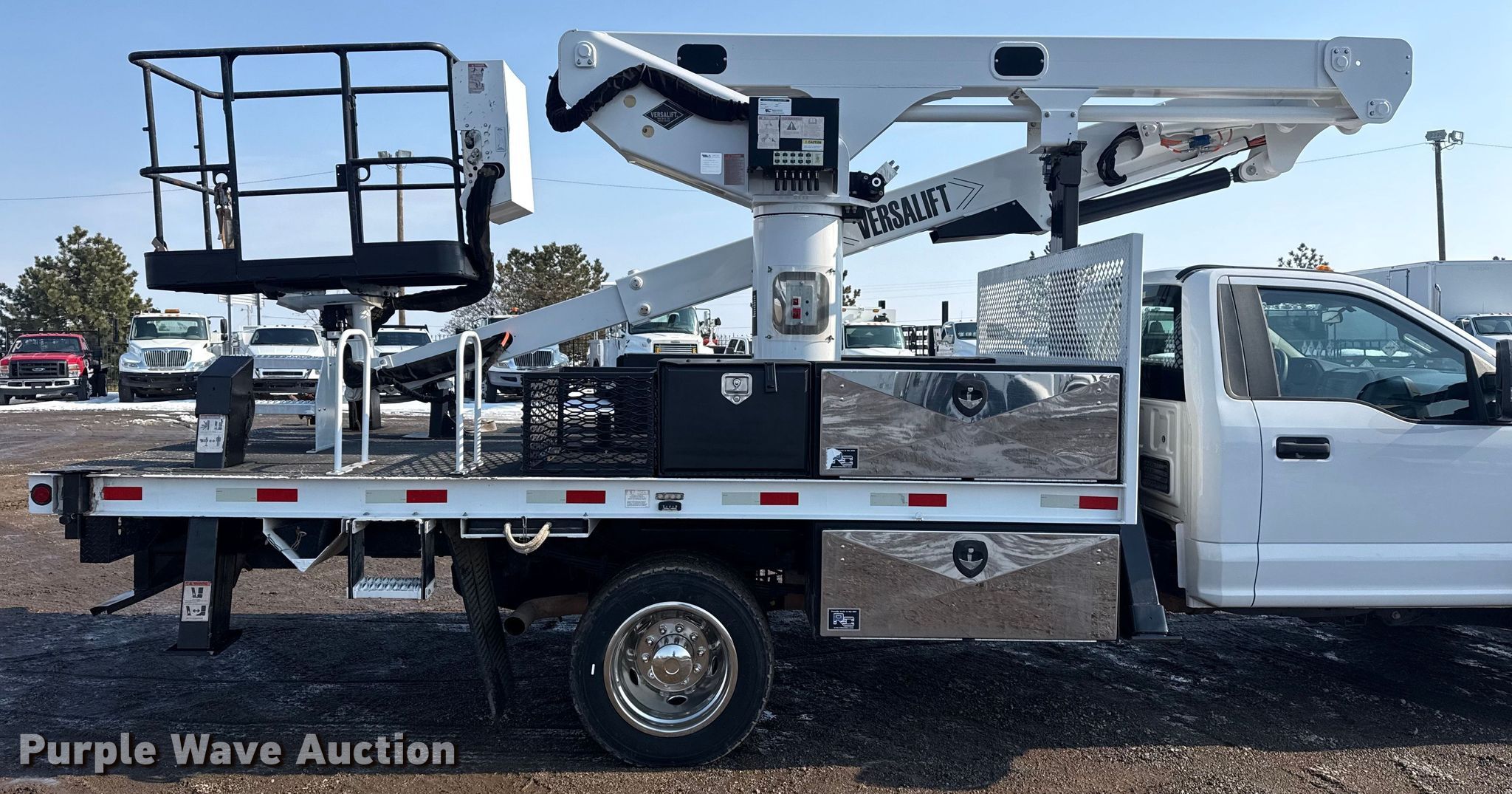 2019 Ford F550 Super Duty XL bucket truck. Miles: 24,009 on odometer, VIN: 1FDUF5HY0KEC14334. Engine Displacement: 6.8L, Cylinders: 10, Fuel type: Gas. Transmission Automatic. Chassis Four wheel drive, Axles: Single, Suspension: Spring, Brakes: Hydraulic, GVWR: 19,500 lbs, Wheelbase: 169". Interior AC, Heat, Heated mirrors, Power windows, Power locks, Cruise control, Auxiliary controls, Brake controller. Features Bed Flatbed, Dakota Bodies 168" FB, Serial: DB35464, Length: 14', Width: 94", Boom 2018 Versalift VST-59TN, Serial: KJ180031, Maximum lift capacity: 500 lbs, Boom type: Articulating, Telescopic, Man basket, Boom controls Lower, Basket.. Tires Size: 225/70R19.5. Notes Platform height on plate missing. Oklahoma title. Seller is an Oklahoma licensed motor vehicle dealer. Buyers may be required to provide identification to the licensed dealer to comply with state laws. Title will be assigned and distributed by the dealer. Please contact the seller for distribution questions. Title distribution may be delayed up to 30 days from verification of funds. Collinsville, OK 74021