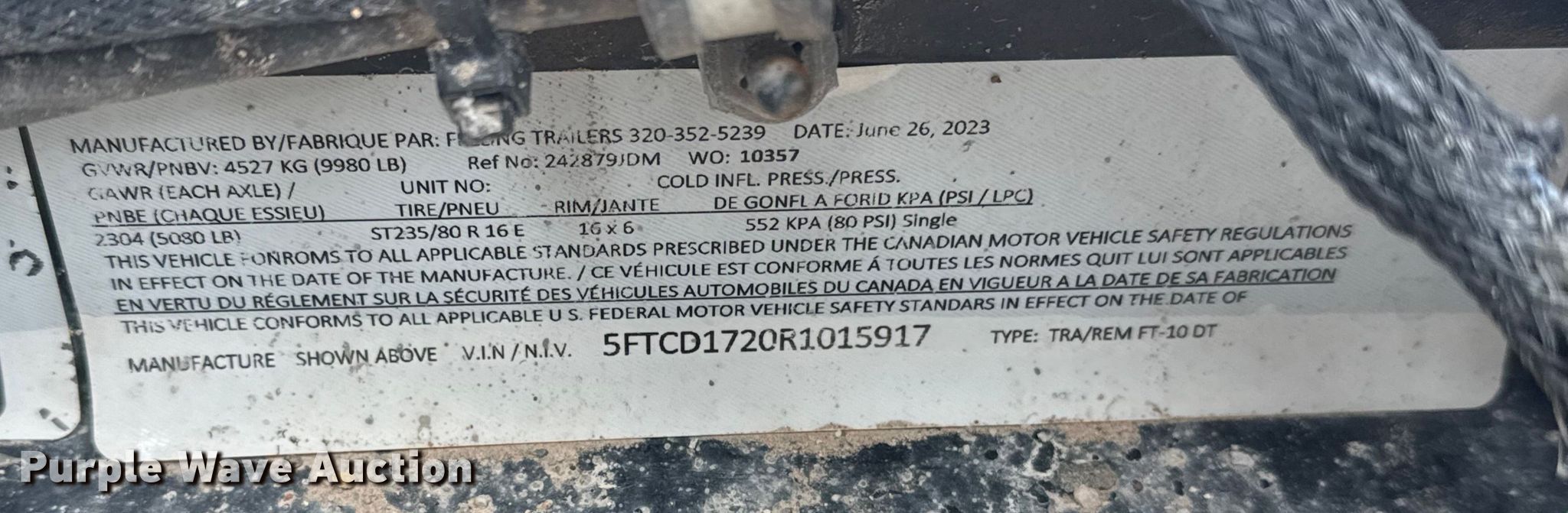 2024 Felling Trailers FT-10DT dump trailer. VIN: 5FTCD1720R1015917. Dimensions Overall Length: 17', Width: 99", Body Length: 12' 4", Width: 80", Side height: 19". Features Body type: Steel, Ram: Single, Roll tarp. Chassis Hitch: Pintle, Landing gear: Single, Suspension: Spring, Brakes: Electric, Axles: Tandem, GVWR: 9,980 lbs, GAWR: 5,080 lbs. Tires Steel wheels, Size: ST235/80R16. Oklahoma title. Seller is an Oklahoma licensed motor vehicle dealer. Buyers may be required to provide identification to the licensed dealer to comply with state laws. Title will be assigned and distributed by the dealer. Please contact the seller for distribution questions. Title distribution may be delayed up to 30 days from verification of funds. Collinsville, OK 74021