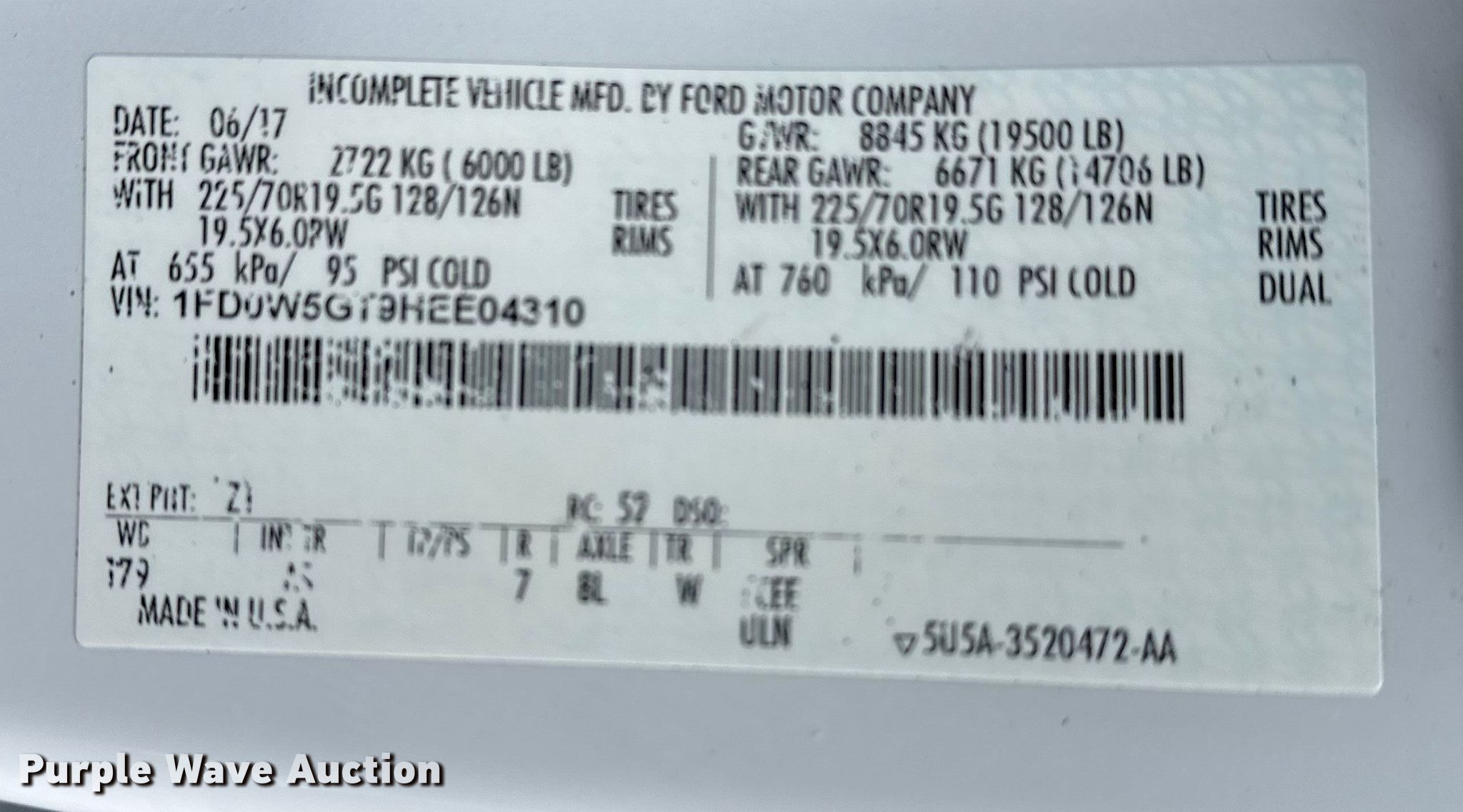 - VIN: 1FD0W5GT9HEE04310