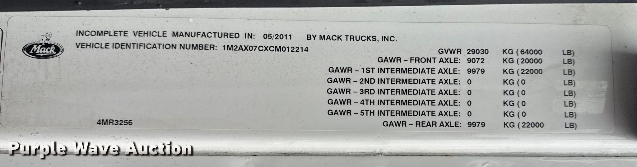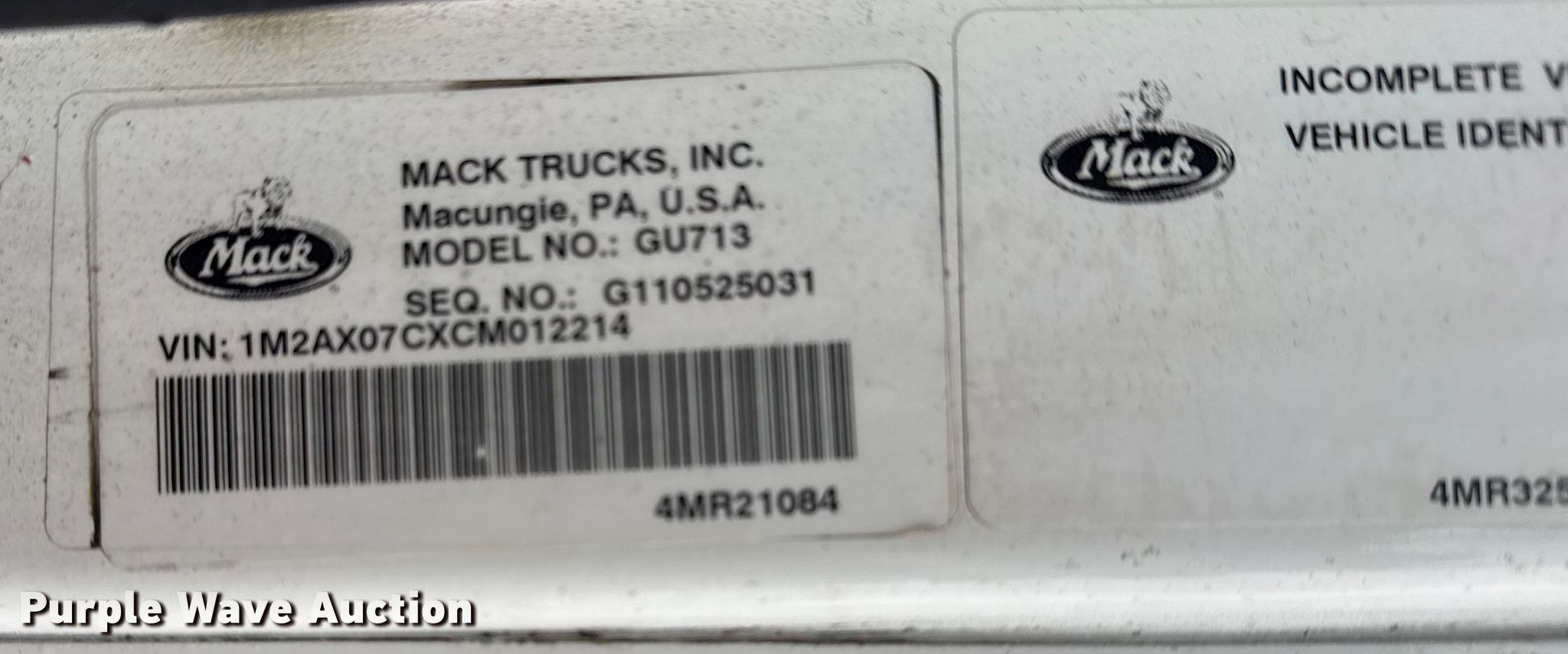 Purple Wave is selling a used Vacuum Truck in Oklahoma. This item is a 2012 Mack GU713 vacuum truck with the following: Miles: 578,349 on odometer, VIN: 1M2AX07CXCM012214