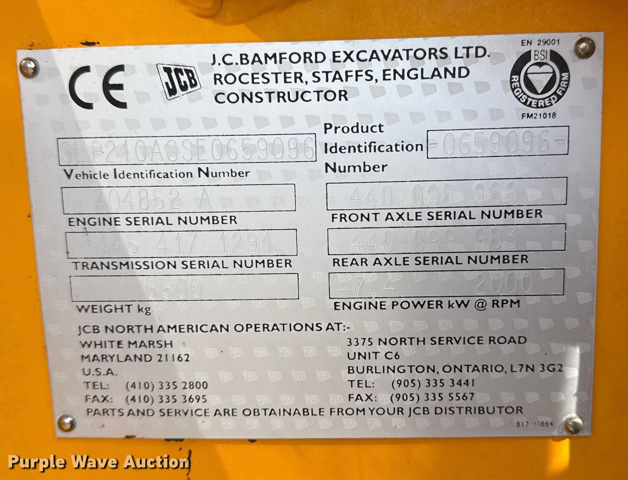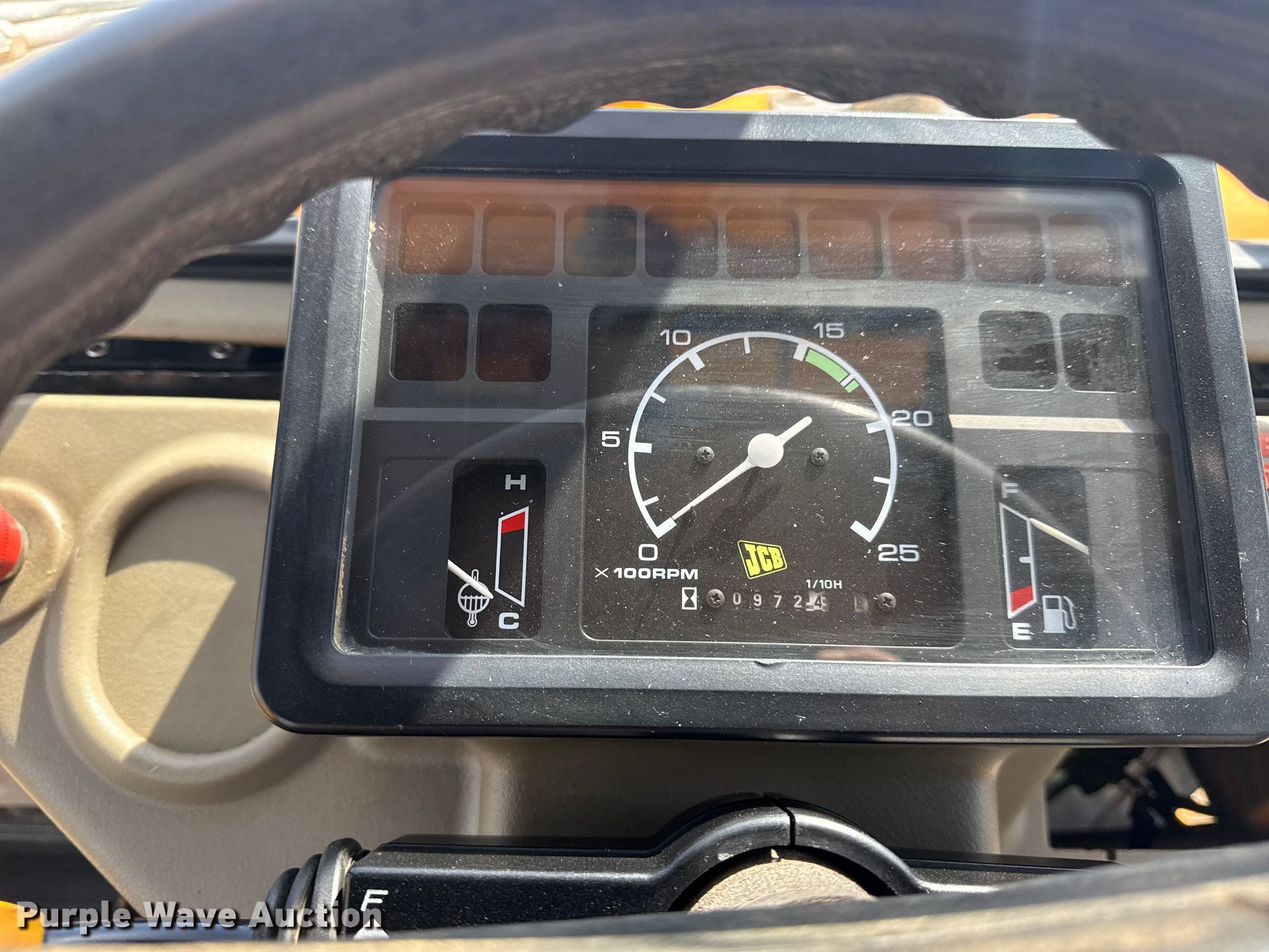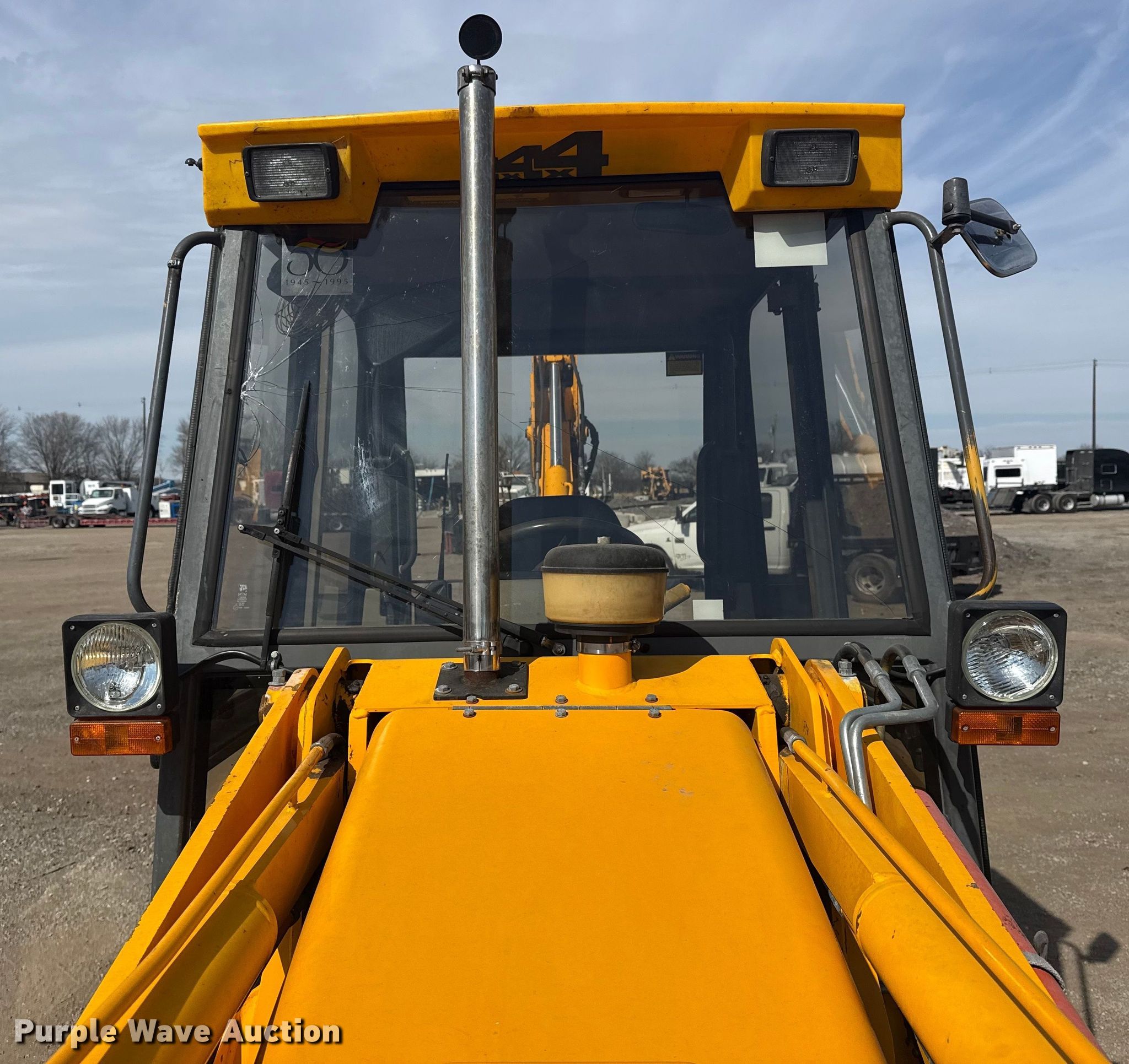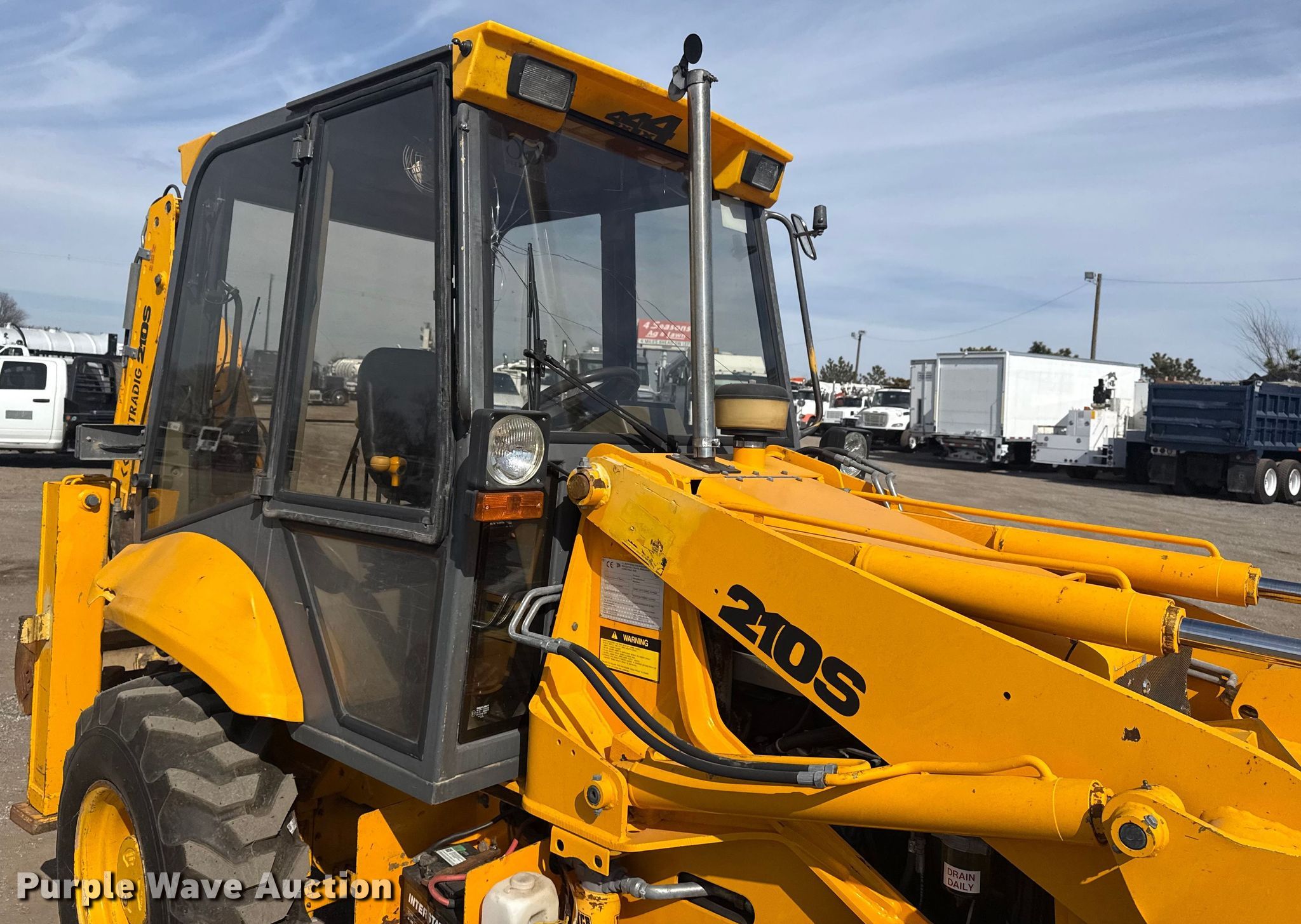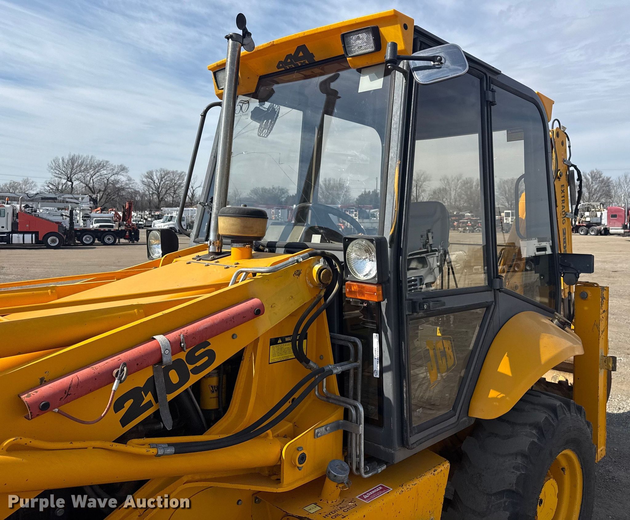 1995 JCB 210S backhoe. Hours: 972 on meter, Serial: SLP210ASSE0659096. Engine Cylinders: 4, Fuel type: Diesel. Transmission Powershift, 4F - 4R. Operators station Enclosed cab, Backhoe controls: Wobble stick / two stick. Features Loader Bucket Width: 72", Cutting edge: Bolt-on, Backhoe Extendable stick, Auxiliary hydraulics, Bucket WB, Width: 35", Teeth: 6.. Tires Front: 12.5/80-18 MPT. Notes Glass cracked, Cutting edge missing, Possible hydraulic leak. Collinsville, OK 74021