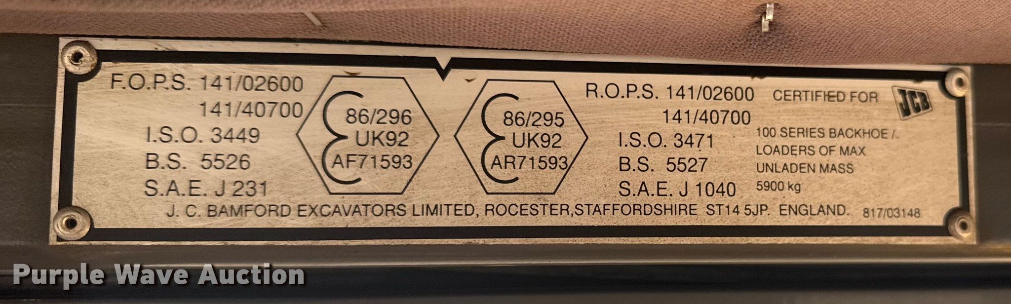 Purple Wave is selling a used Tractor Loader Backhoe in Oklahoma. This item is a 1995 JCB 210S backhoe with the following: Hours: 972 on meter, Serial: SLP210ASSE0659096