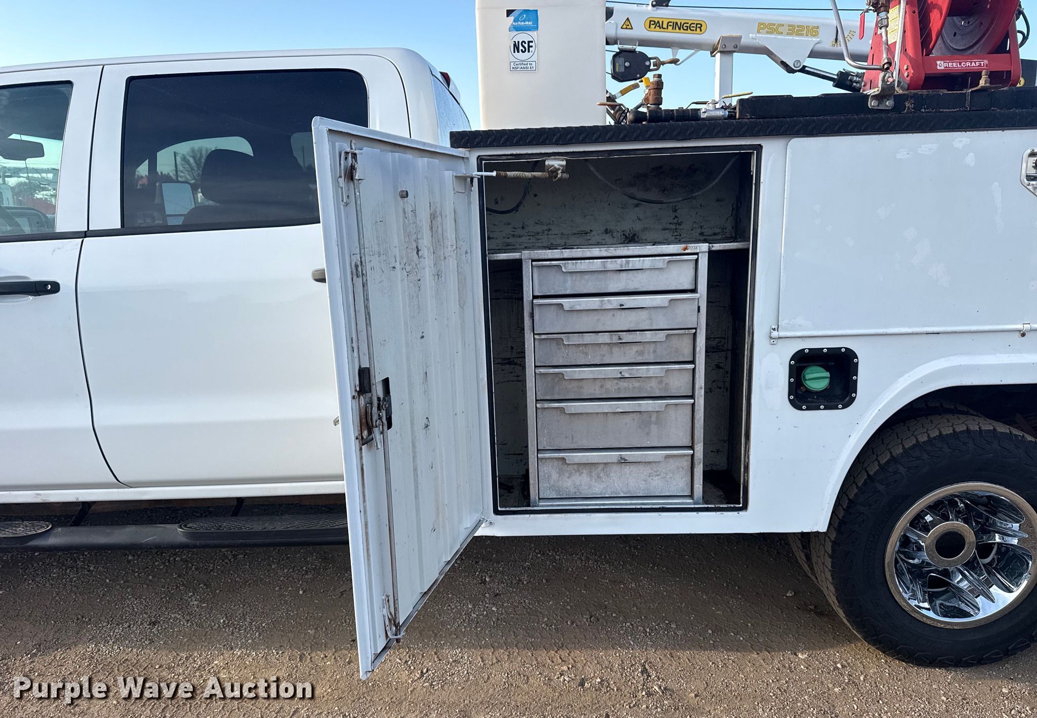 2018 Chevrolet 3500HD utility / service truck. Miles: 277,613 on odometer, VIN: 1GB4KYCYXJF173877. Engine GM X7XK36043, Displacement: 6.6L, Cylinders: 8, Fuel type: Diesel. Transmission Automatic. Chassis Four wheel drive, Axles: Single, Suspension: Spring, Brakes: Hydraulic, PTO, GVWR: 13,200 lbs. Interior AC, Heat, Power windows, Power locks, Cruise control, Brake controller. Features Bed Utility bed, Length: 9', Width: 94", Oil/lube system Hose reels, Crane Palfinger PSC3216, Maximum boom length: 18' Maximum lift capacity: 4,000 lbs.. Tires Size: LT235/80R17. Oklahoma title. Seller is an Oklahoma licensed motor vehicle dealer. Buyers may be required to provide identification to the licensed dealer to comply with state laws. Title will be assigned and distributed by the dealer. Please contact the seller for distribution questions. Title distribution may be delayed up to 30 days from verification of funds. Collinsville, OK 74021