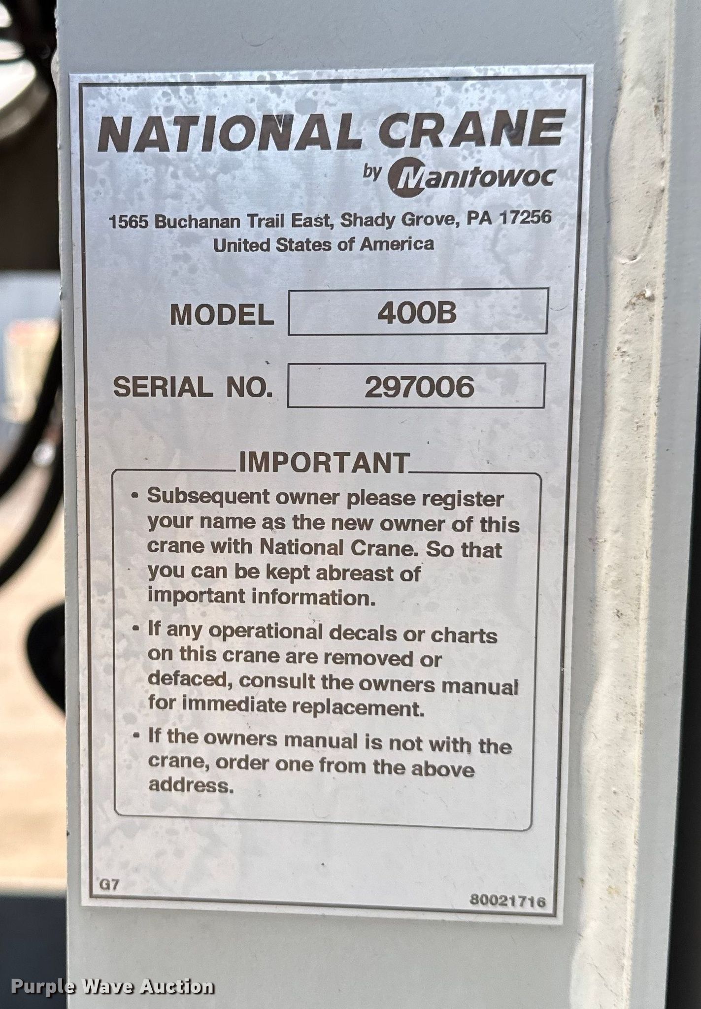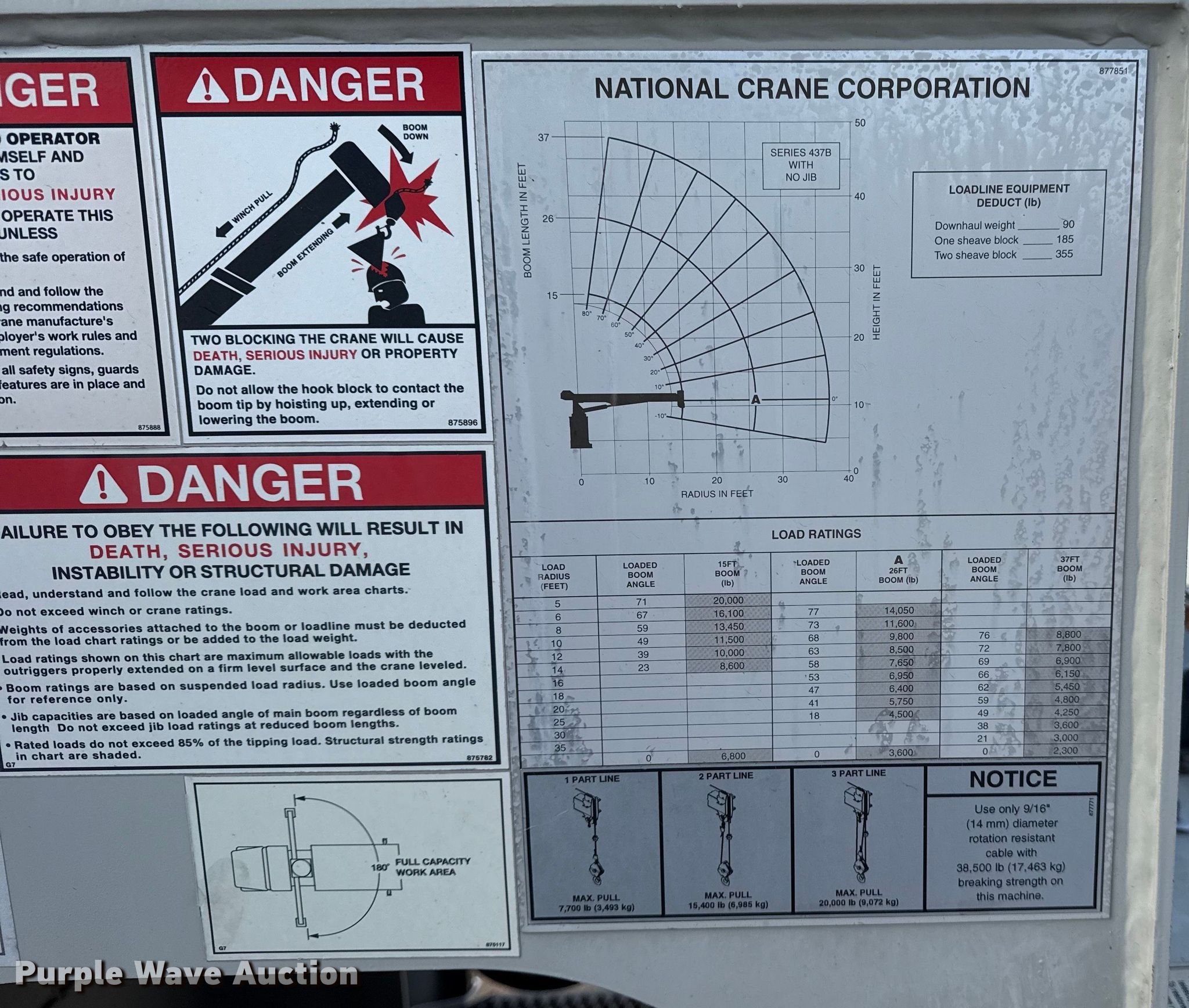 2012 Freightliner Business Class M2 crane truck. Miles: 157,346 on odometer, Hours: 12,905 on meter, VIN: 1FVHC7DV8CDBH5573. Engine Detroit Diesel DD13, Displacement: 12.8L, Cylinders: 6, Fuel type: Diesel, Engine brake. Transmission Eaton Fuller 8LL, Manual, Speed: 10. Chassis Axles: Tandem, Differential lock: Inter-axle, Suspension: Air, Brakes: Air, PTO, GVWR: 60,000 lbs FAWR: 20,000 lbs, RAWR: 20,000 lbs. Interior AC, Heat, Cruise control. Features Bed Flatbed, Length: 11' 3", Width: 96", Crane National Crane 400B, Boom Telescopic, Maximum boom length: 37' Sections: 2, Maximum lift capacity: 20,000 lbs, Boom controls, Crane block Sheaves: 1, Capacity: 12 tons, Lift chart. Tires Front: 425/65R22.5, Rear: 11R22.5. Oklahoma title. Seller is an Oklahoma licensed motor vehicle dealer. Buyers may be required to provide identification to the licensed dealer to comply with state laws. Title will be assigned and distributed by the dealer. Please contact the seller for distribution questions. Title distribution may be delayed up to 30 days from verification of funds. Collinsville, OK 74021