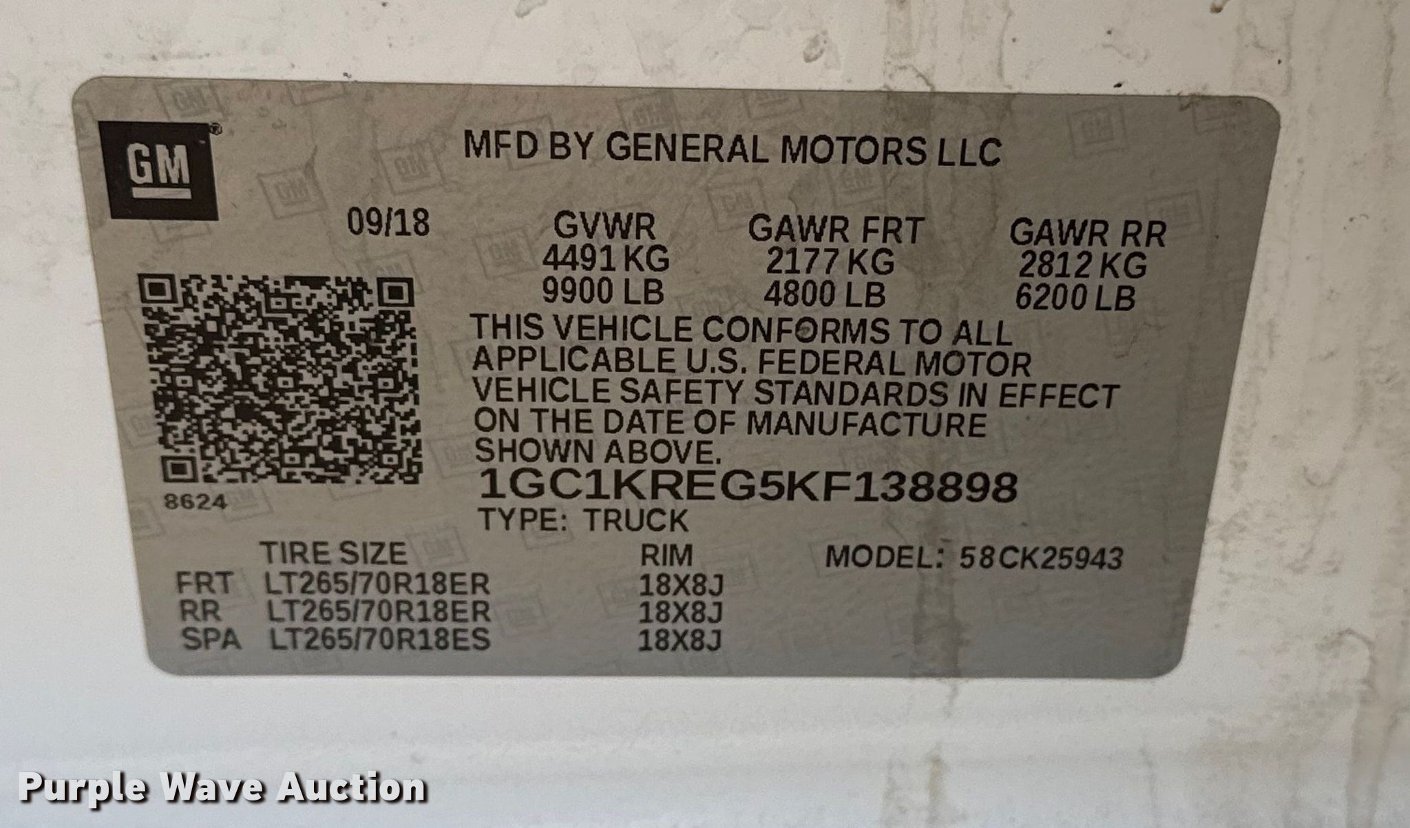 - VIN: 1GC1KREG5KF138898
