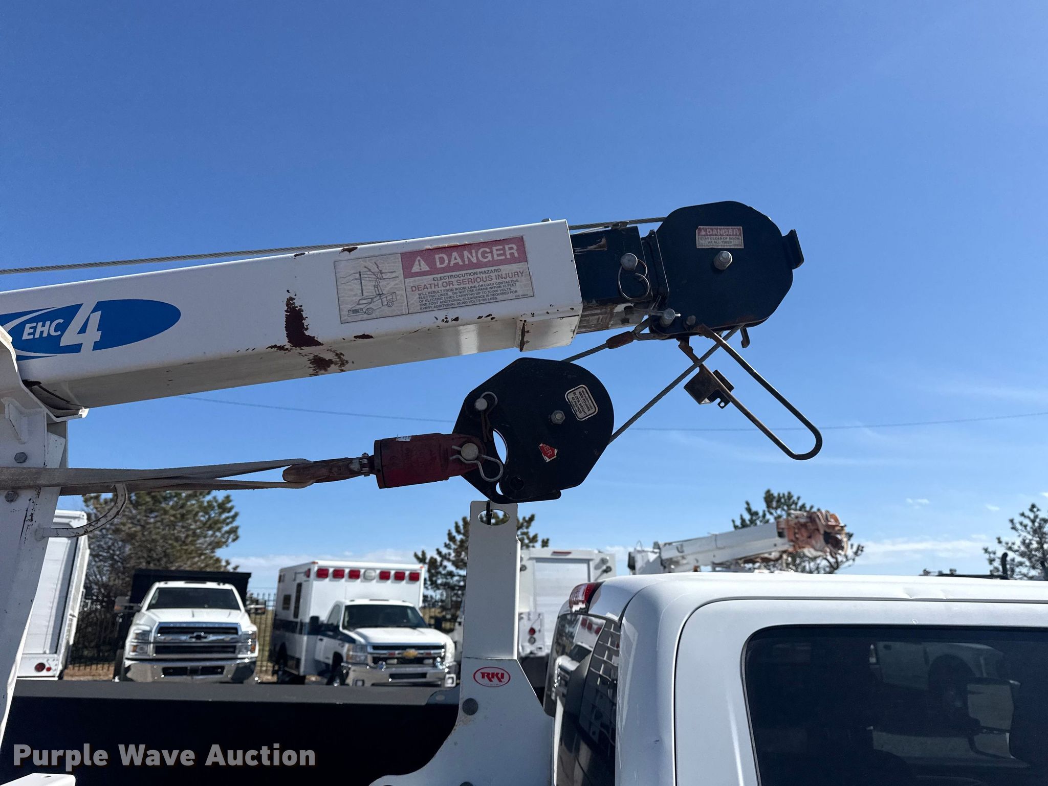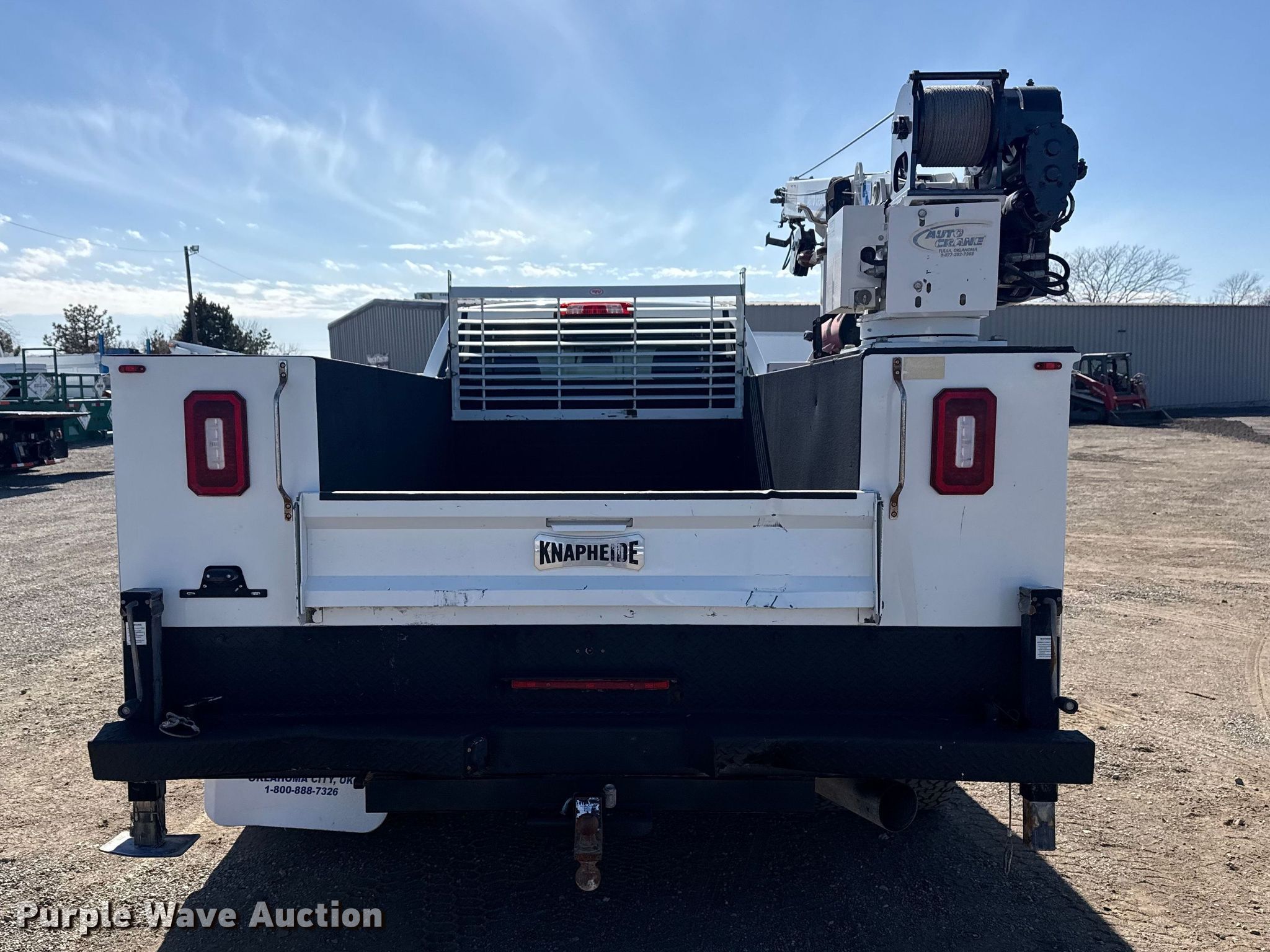 2018 Chevrolet Silverado 3500HD Crew Cab utility / service truck. Miles: 182,245 on odometer, VIN: 1GC4KYCY3JF201238. Engine Displacement: 6.6L, Cylinders: 8, Fuel type: Diesel. Transmission Automatic. Chassis Four wheel drive, Axles: Single, Suspension: Spring, Brakes: Hydraulic, PTO, GVWR: 13,025 lbs. Interior AC, Heat, Power windows, Power locks, Cruise control, Backup camera, Auxiliary controls, Brake controller. Features Bed Utility bed, Knapheide 696D54-2, Serial: 20171129-0547563, Length: 8' 1", Width: 96", Crane Auto Crane EHC4, Maximum boom length: 17' Maximum lift capacity: 4,000 lbs.. Tires Size: LT245/75R17. Oklahoma title. Seller is an Oklahoma licensed motor vehicle dealer. Buyers may be required to provide identification to the licensed dealer to comply with state laws. Title will be assigned and distributed by the dealer. Please contact the seller for distribution questions. Title distribution may be delayed up to 30 days from verification of funds. Collinsville, OK 74021