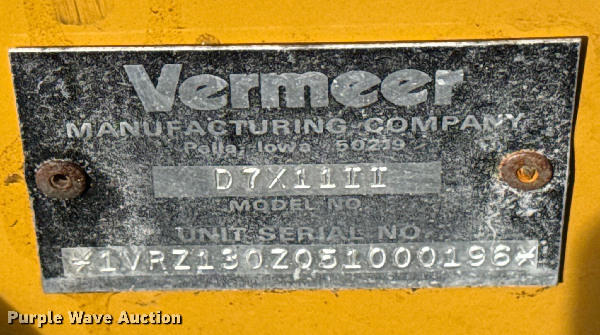 Purple Wave is selling a used Directional Boring Unit in Oklahoma. This item is a 2005 Vermeer D7X11 Series II directional boring unit with the following: Hours: 2,888 on meter, Serial: 1VRZ130Z051000196
