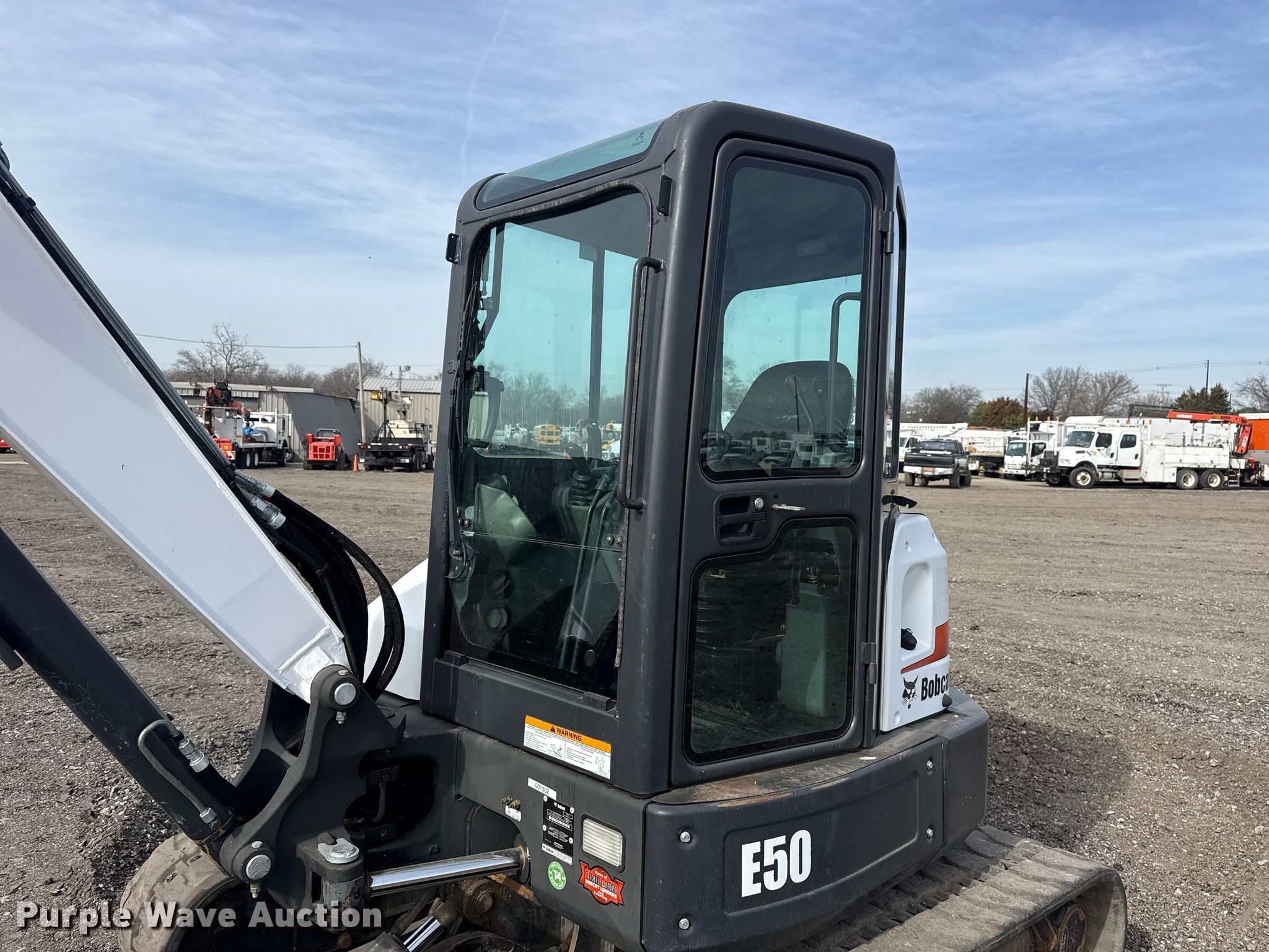 Purple Wave is selling a used Mini Excavator in Oklahoma. This item is a 2015 Bobcat E50 mini excavator with the following: Hours: 2,742 on meter, Serial: AJ1811740