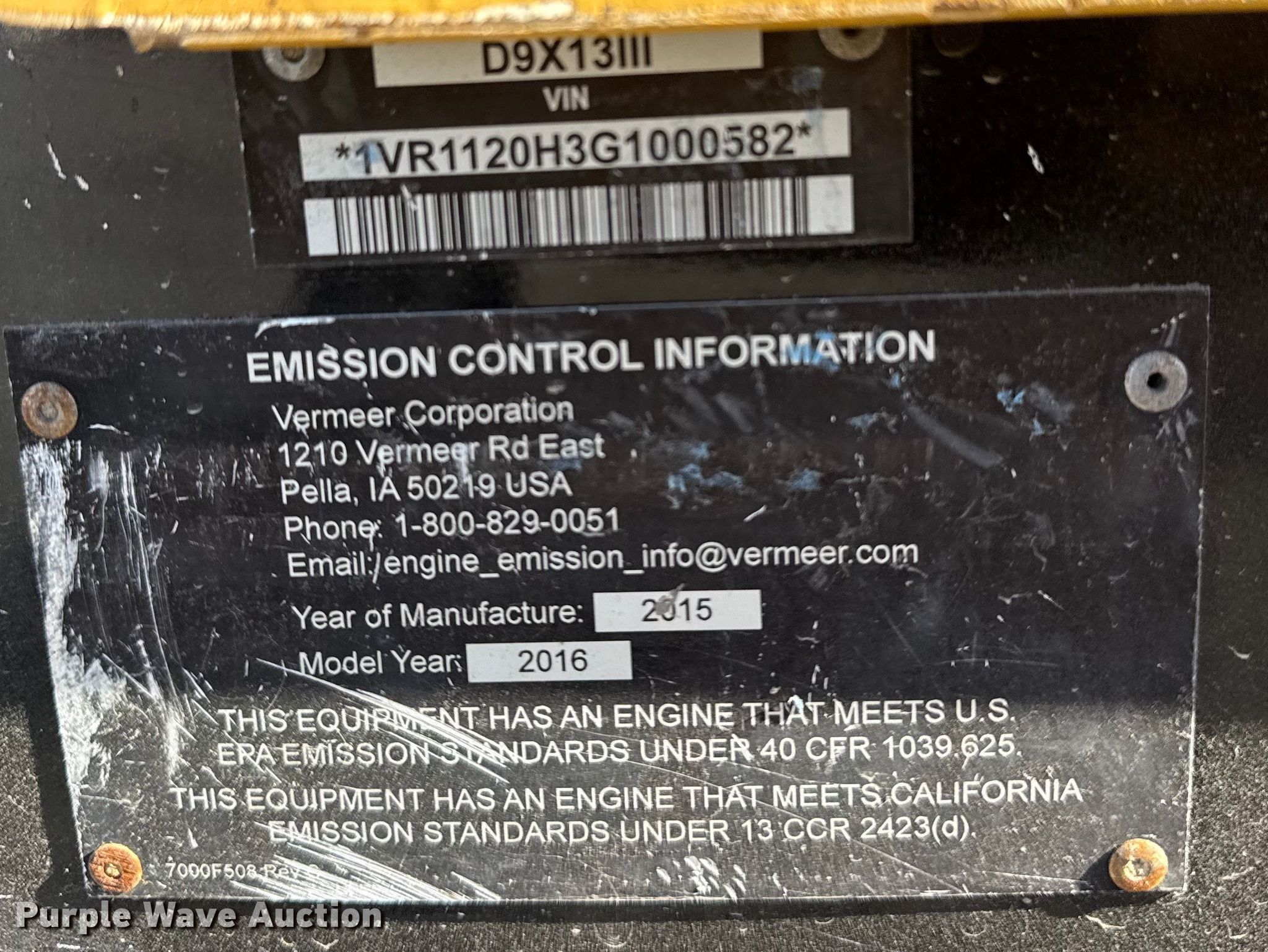Purple Wave is selling a used Directional Boring Unit in Oklahoma. This item is a 2016 Vermeer D9X13III directional boring unit with the following: Hours: 2,186 on meter, Serial: 1VR1120H3G1000582