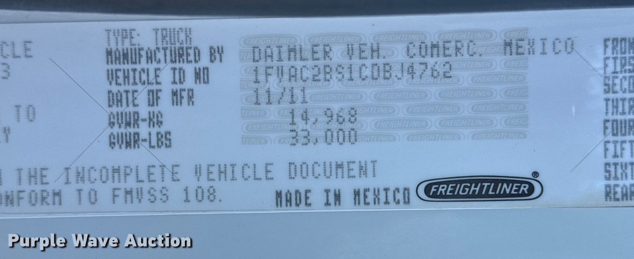 Purple Wave is selling a used Service Truck in Oklahoma. This item is a 2012 Freightliner Business Class M2 utility / service truck with the following: Miles: 99,041 on odometer, Hours: 12,161 on meter, VIN: 1FVAC2BS1CDBJ4762