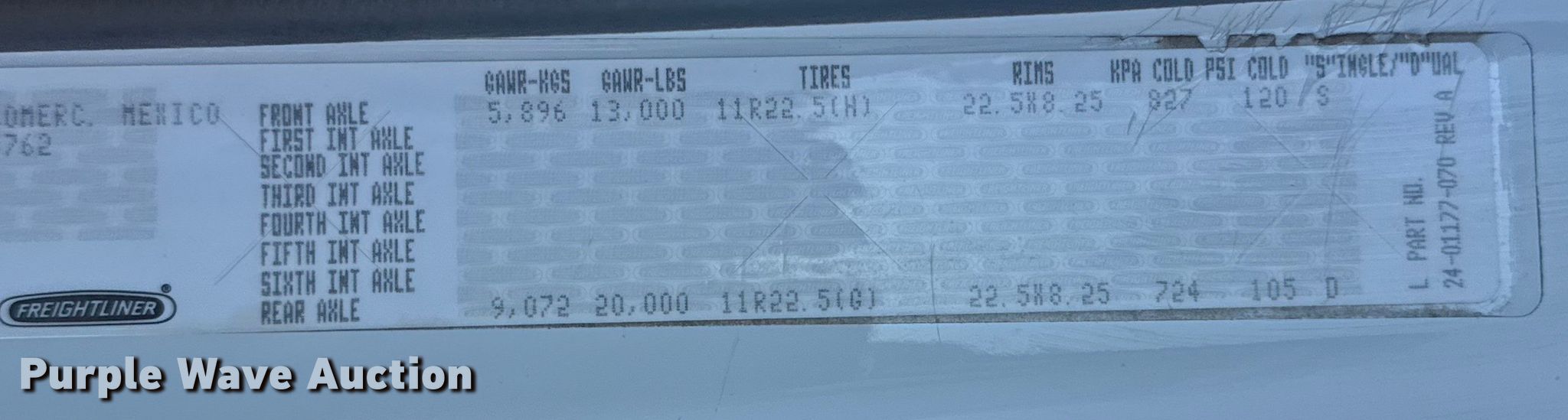 2012 Freightliner Business Class M2 utility / service truck. Miles: 99,041 on odometer, Hours: 12,161 on meter, VIN: 1FVAC2BS1CDBJ4762. Engine Cummins ISC, Displacement: 8.3L, Cylinders: 6, Fuel type: Diesel. Transmission Eaton Fuller, Manual, Speed: 10. Chassis Axles: Single, Suspension: Spring, Brakes: Air, PTO, GVWR: 33,000 lbs. Interior AC, Heat, Heated mirrors, Cruise control. Features Bed Utility bed, Length: 14' 7", Width: 96", Crane IMT 2820, Maximum boom length: 20' Maximum lift capacity: 5,000 lbs, End gate lift Waltco SB12, Capacity: 1,250 lbs. Tires Size: 11R22.5. Oklahoma title. Seller is an Oklahoma licensed motor vehicle dealer. Buyers may be required to provide identification to the licensed dealer to comply with state laws. Title will be assigned and distributed by the dealer. Please contact the seller for distribution questions. Title distribution may be delayed up to 30 days from verification of funds. Collinsville, OK 74021