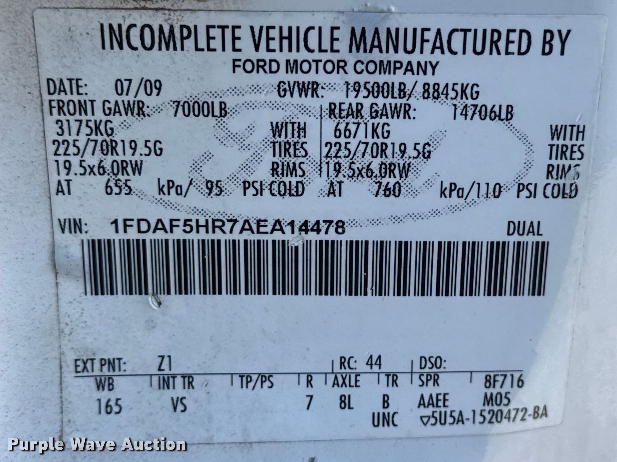 - VIN: 1FDAF5HR7AEA14478