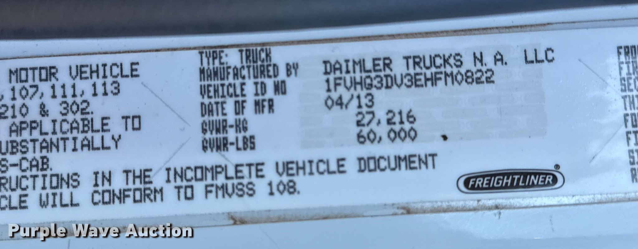 - VIN: 1FVHG3DV3EHFM0822
