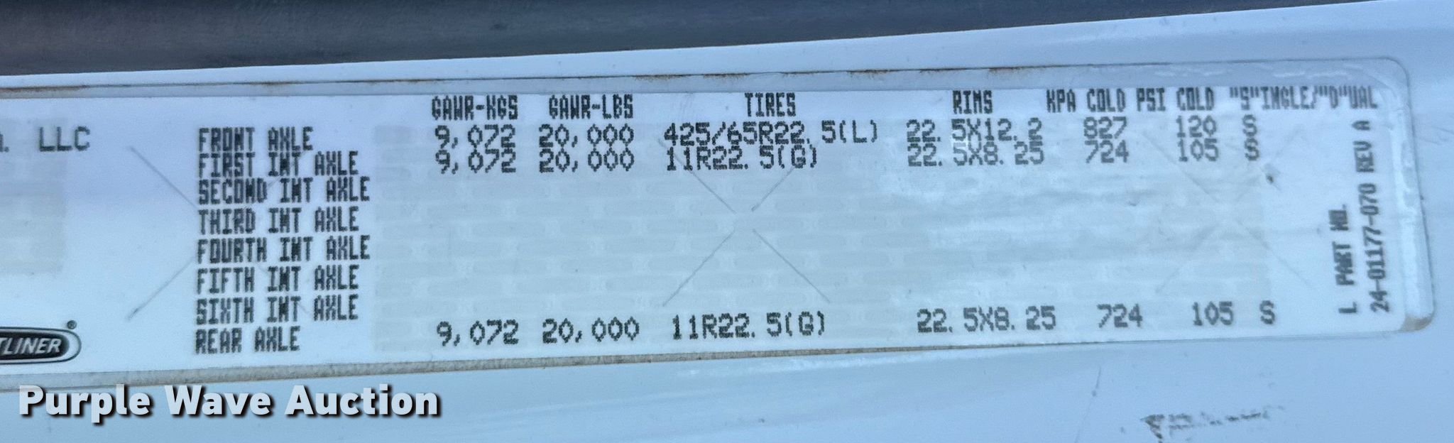 - Front: 425/65R22.5