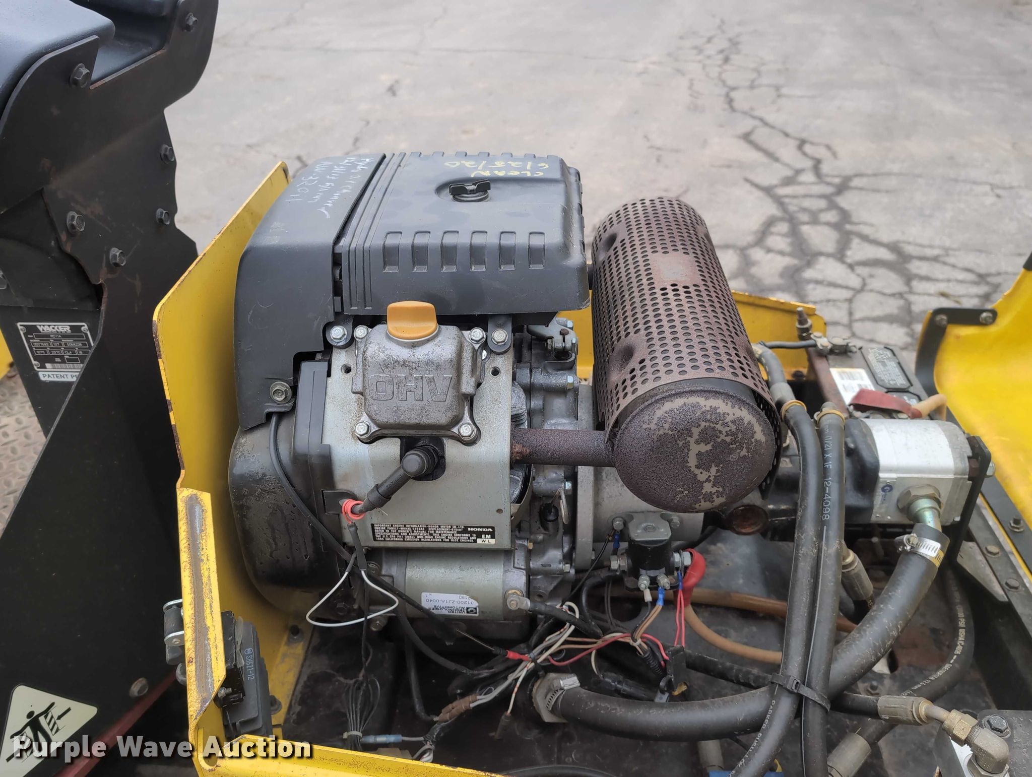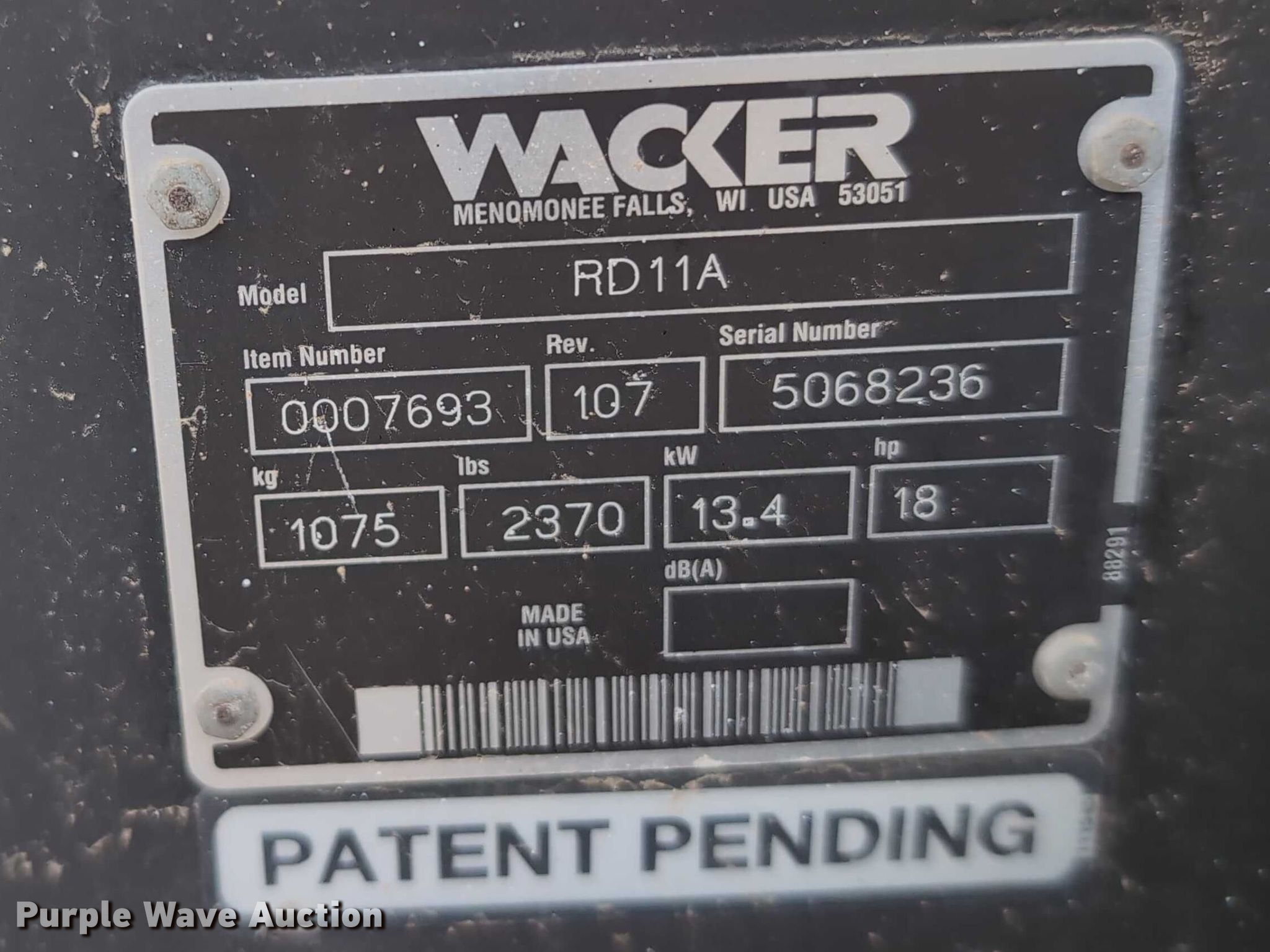 1999 Wacker RD11A double drum roller. Hours: Unknown, Serial: 5068236. Engine Honda GX610, Displacement: 614cc, Cylinders: 2, Fuel type: Gas, HP: 18, kW: 13.4. Transmission Hydrostatic. Operators station OROPS. Features Drum type: Smooth, Vibratory system: Single, Front drum Width: 35", Diameter: 21", Rear drum Width: 35", Diameter: 21", Drum scrapers: Front, Rear, Water spray applicator: Front, Rear. Notes Non-operational hour meter. Joliet, IL 60433