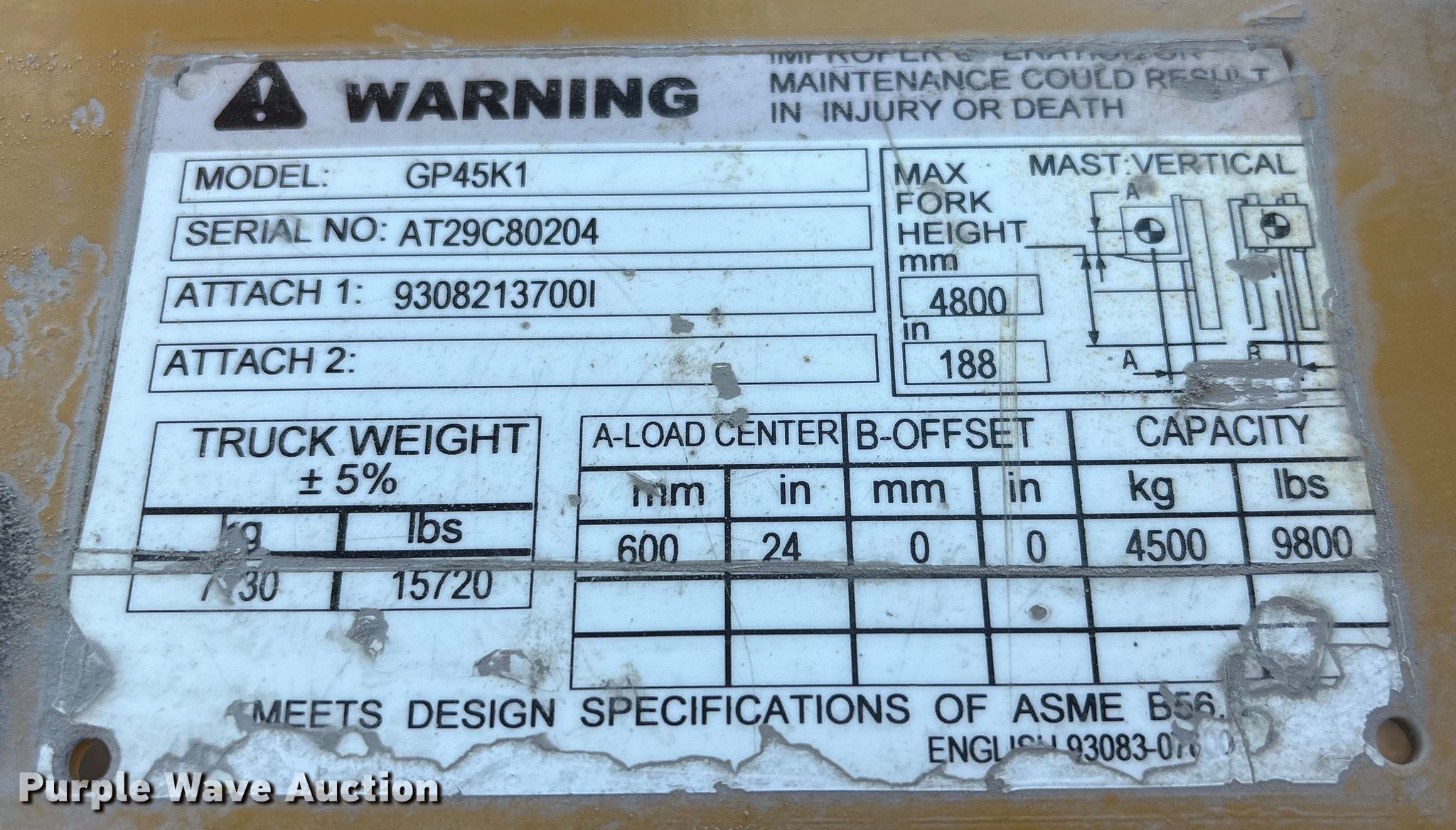 Purple Wave is selling a used Warehouse Forklift in Nebraska. This item is a Caterpillar GP45K1 forklift with the following: Hours: 7,431 on meter, Serial: AT29C80204