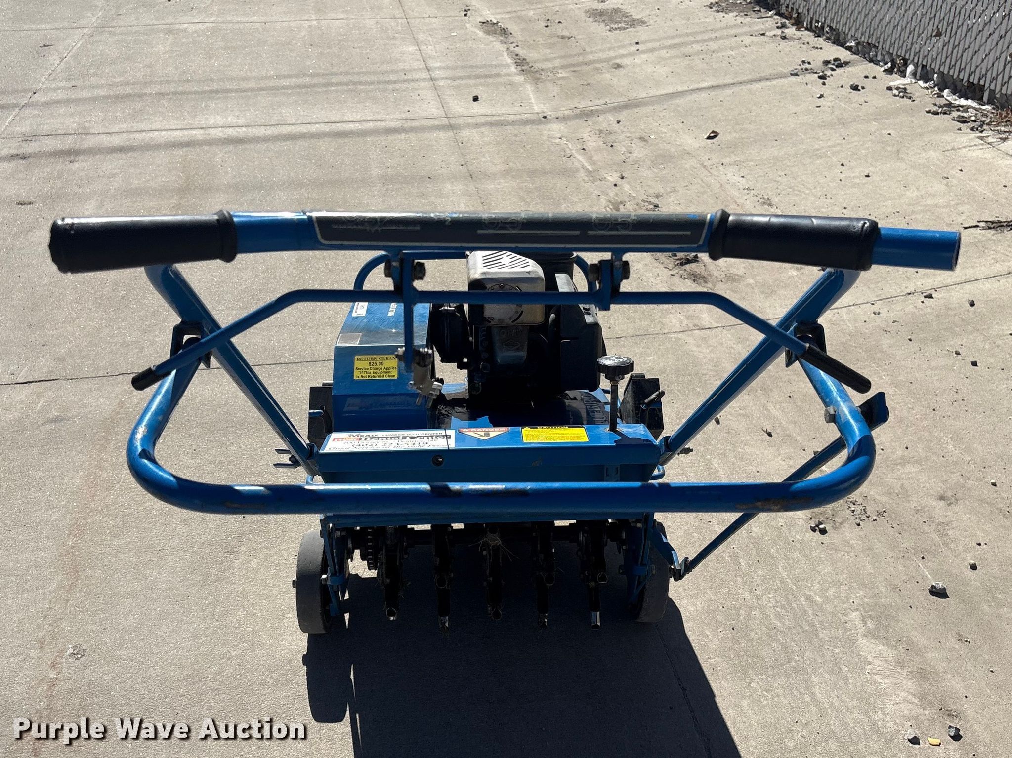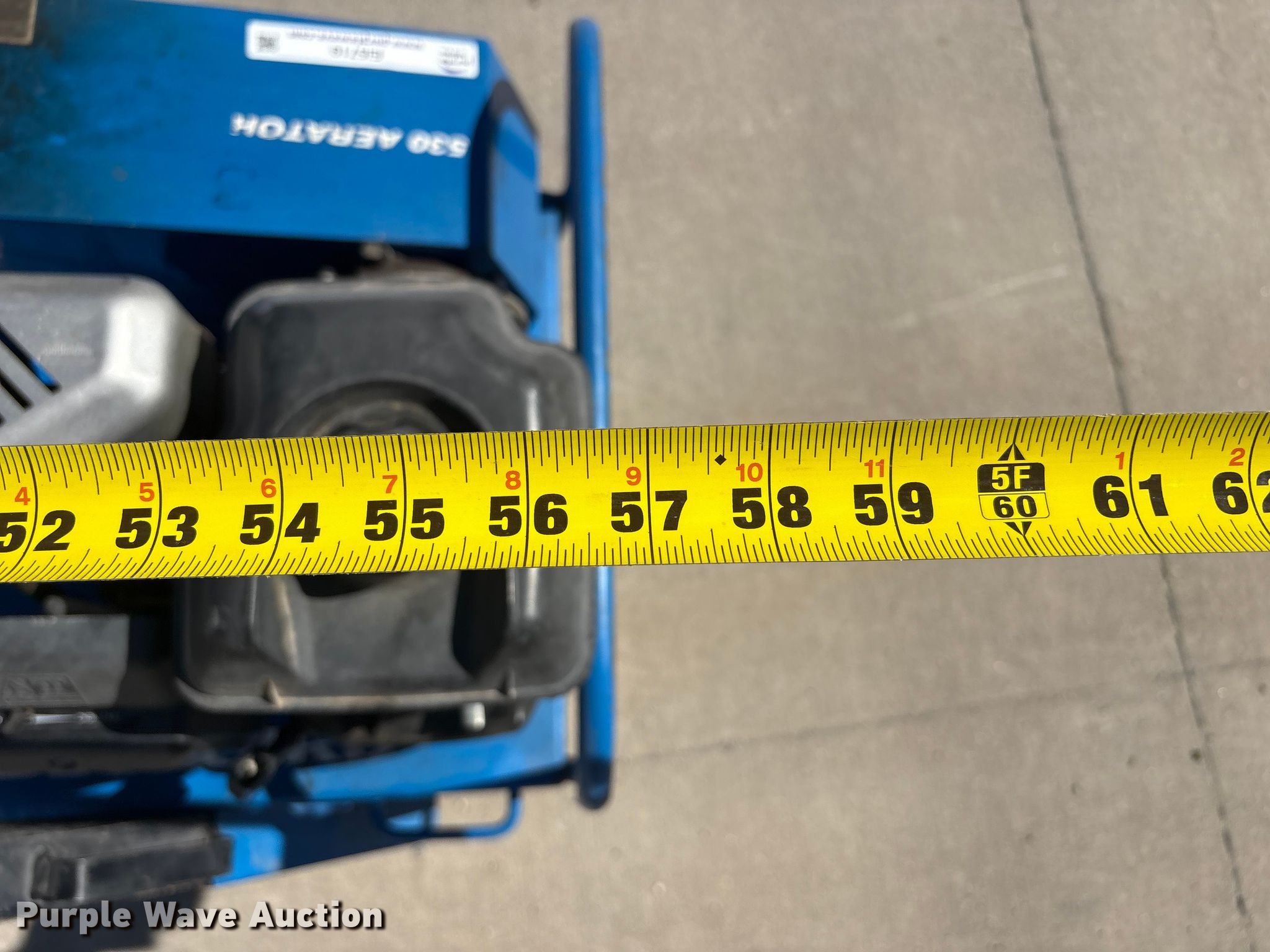 2006 Husqvarna B530B aerator. Serial: 060670687. Dimensions Overall Length: 57", Width: 28", Height: 48". Engine Briggs & Stratton, Displacement: 5.5hp, Cylinders: 1, Fuel type: Gas. Transmission Hydrostatic. Mead Lumber of Beatrice. Beatrice, NE 68310