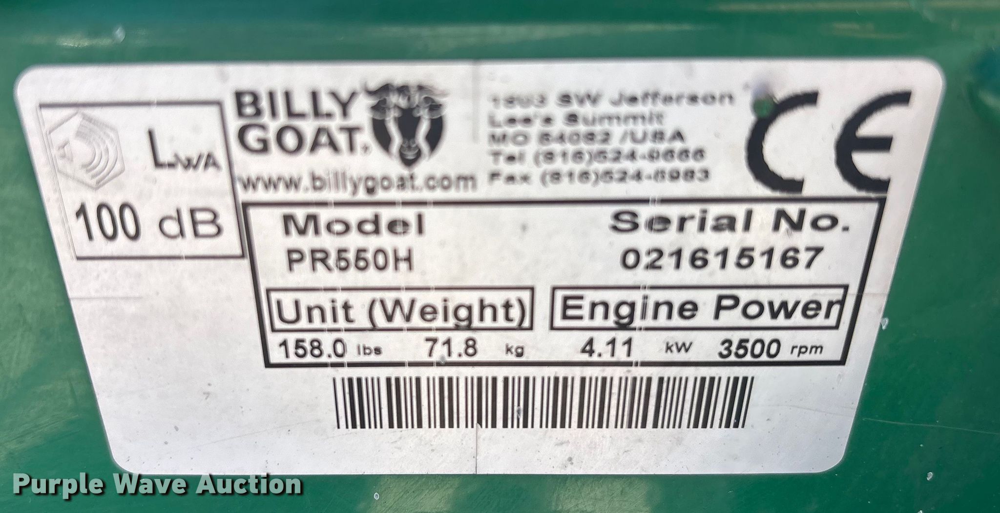 Purple Wave is selling a used Lawn and Garden in Nebraska. This item is a Billy Goat PR550H power rake with the following: Serial: 021615167