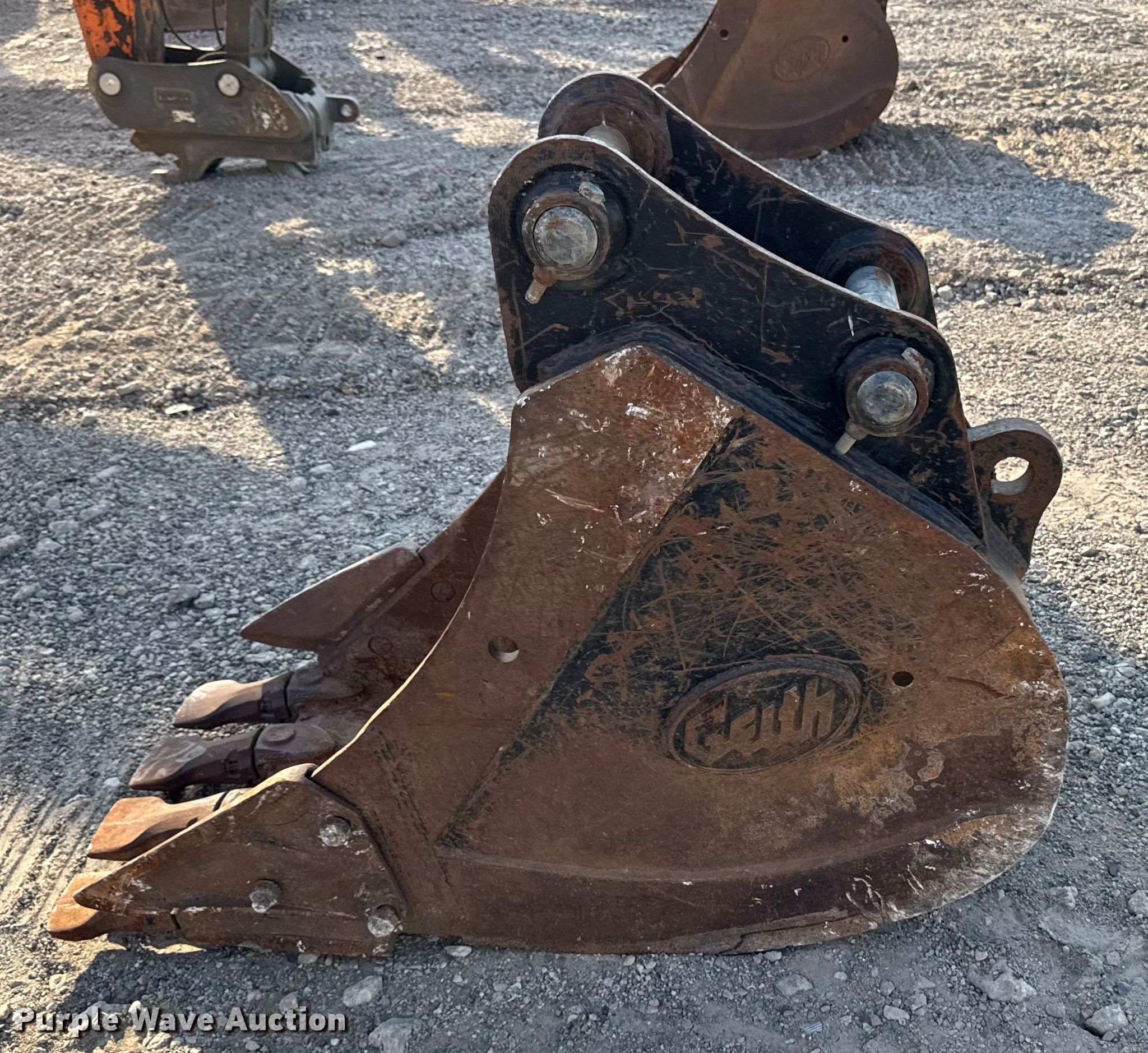 Purple Wave is selling a used Excavator Attach. in Iowa. This item is a Geith excavator bucket with the following: Serial: 1010697, Unit #: 85705775, Width: 24", Teeth: 4