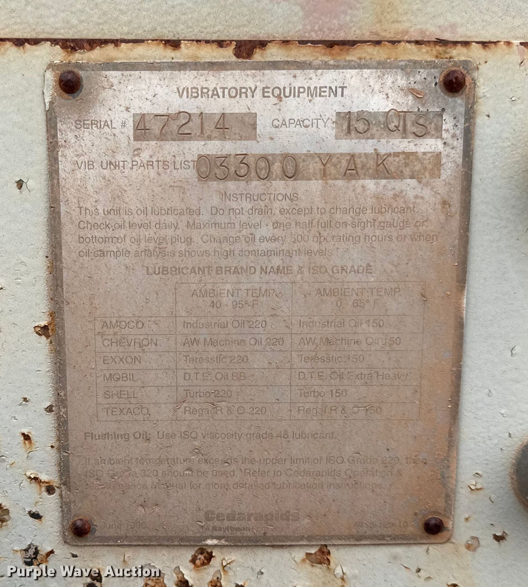Purple Wave is selling a used Screen or Screening Plant in Kansas. This item is a Cedar Rapids screen with the following: Serial: 47214