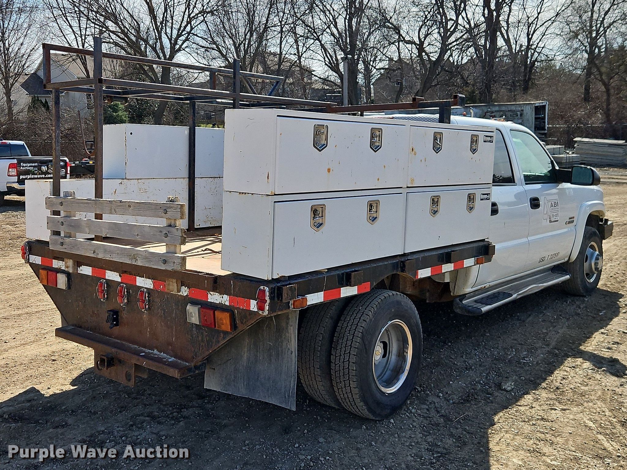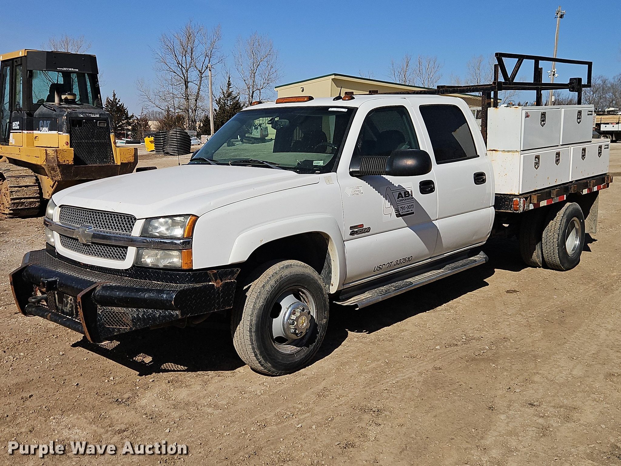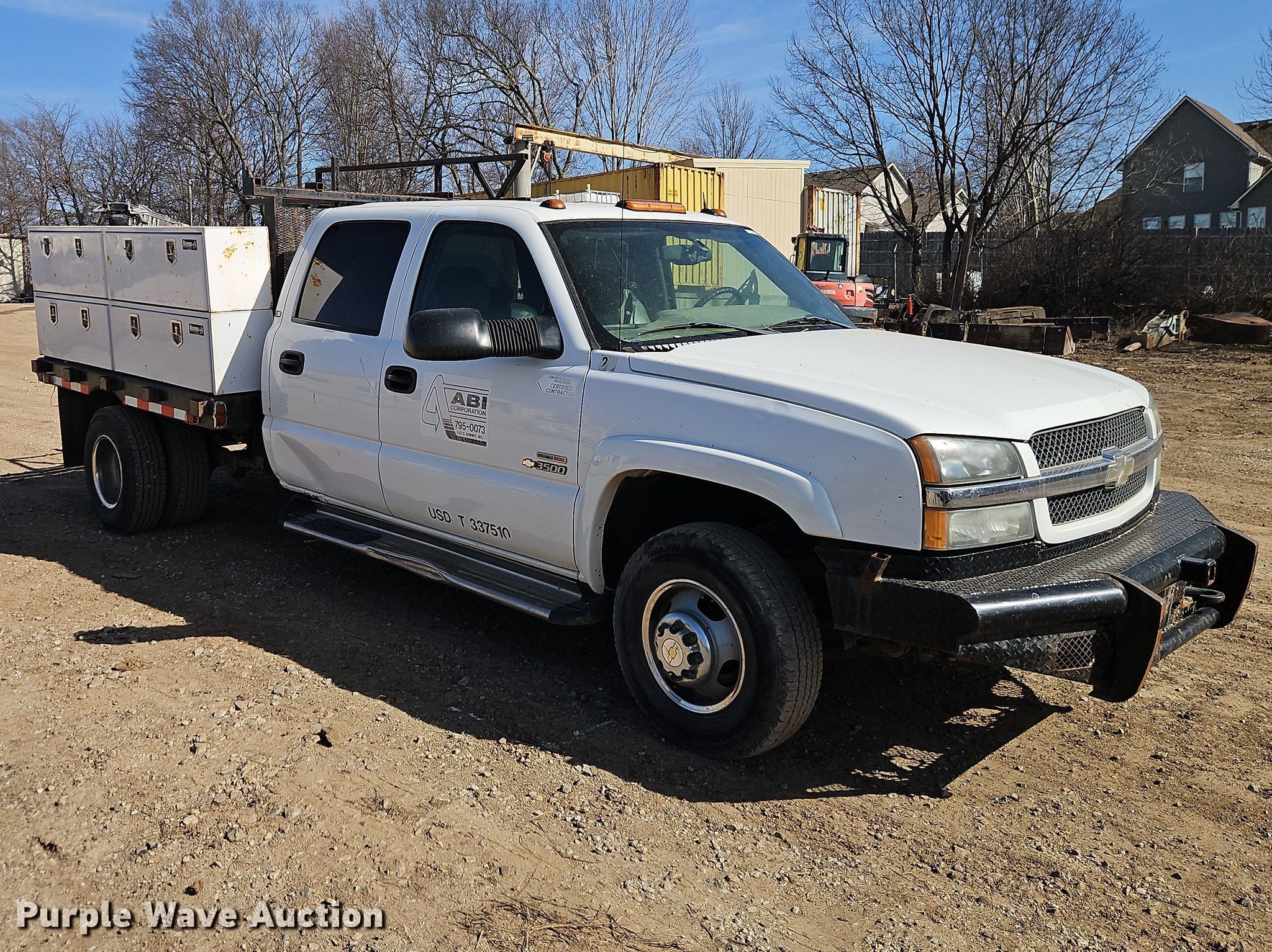 2004 Chevrolet Silverado 3500 Crew Cab flatbed pickup truck. Miles: 203,596 on odometer, VIN: 1GCJC33284F268484. Engine Displacement: 6.6L, Cylinders: 8, Fuel type: Diesel. Transmission Automatic. Interior AC, Heat, Seat: Power driver, Power windows, Power locks, Cruise control, Brake controller. Features Bed Flatbed, Length: 8', Width: 96". Tires Size: 215/85R16. Notes Toolboxes included, Dash warning indicator: Check engine, Airbag, Windshield chipped or cracked, Possible AC issues, may need recharge. Missouri title. Title distribution may be delayed up to 14 days from verification of funds. ABI Corporation. Lee's Summit, MO 64064