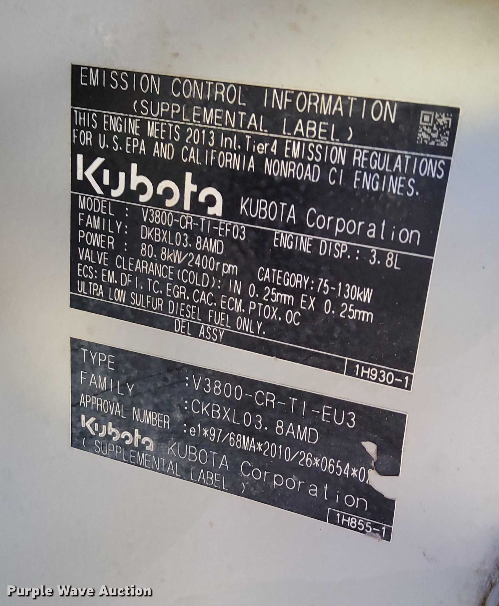 2013 Takeuchi TL12 tracked skid steer loader. Hours: Unknown, Serial: 201200488, Unit #: SS006. Engine Kubota V3800, Displacement: 3.8L, Cylinders: 4, Fuel type: Diesel. Transmission Hydrostatic, Two speed travel. Operators station Enclosed cab, AC, Heat, Bucket control: Hand. Features Auxiliary hydraulics, Bucket Width: 80", Low profile, Teeth: Weld-on. Tracks Brand: Takeuchi, Width: 18". Notes Hour meter illumination issues, Cab door missing. Kissick Construction Company. Kansas City, MO 64132