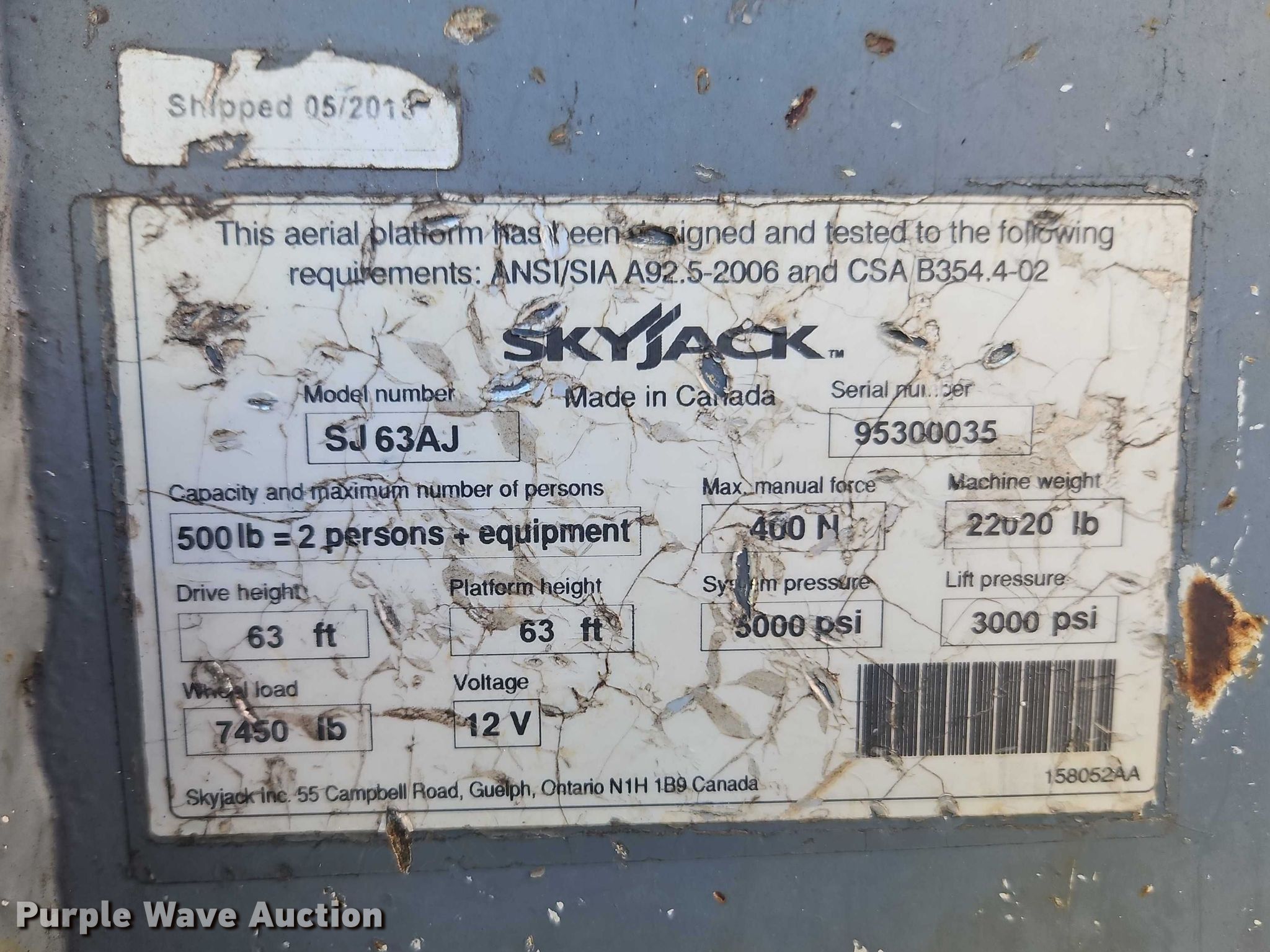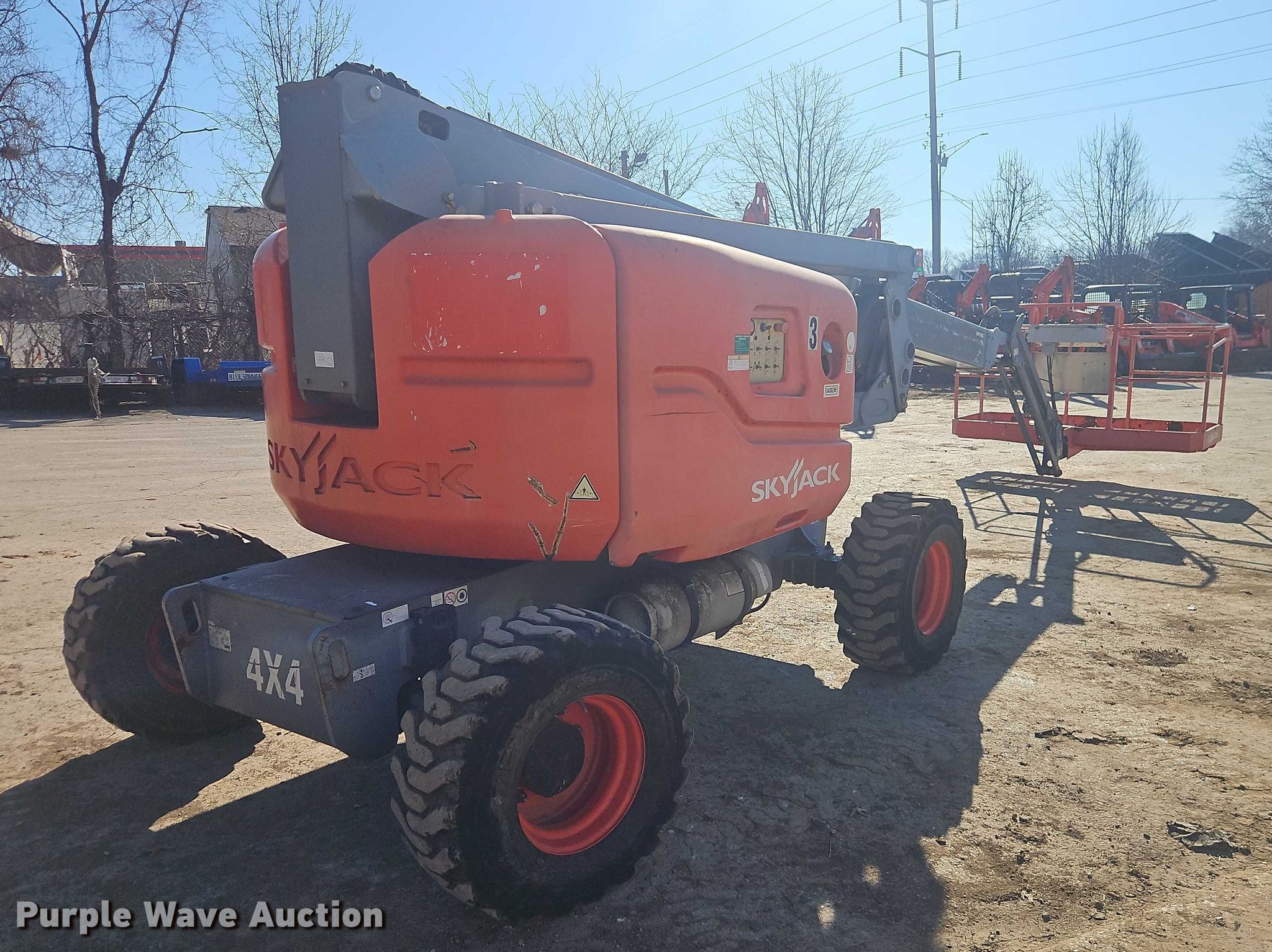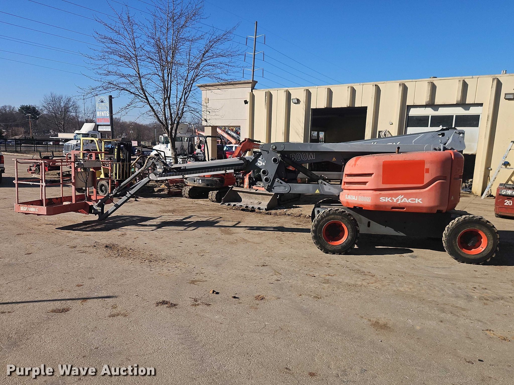 Purple Wave is selling a used Boom Lift in Missouri. This item is a 2013 Skyjack SJ63AJ boom lift with the following: Hours: 2,608 on meter, Serial: 95300035, Unit #: 3