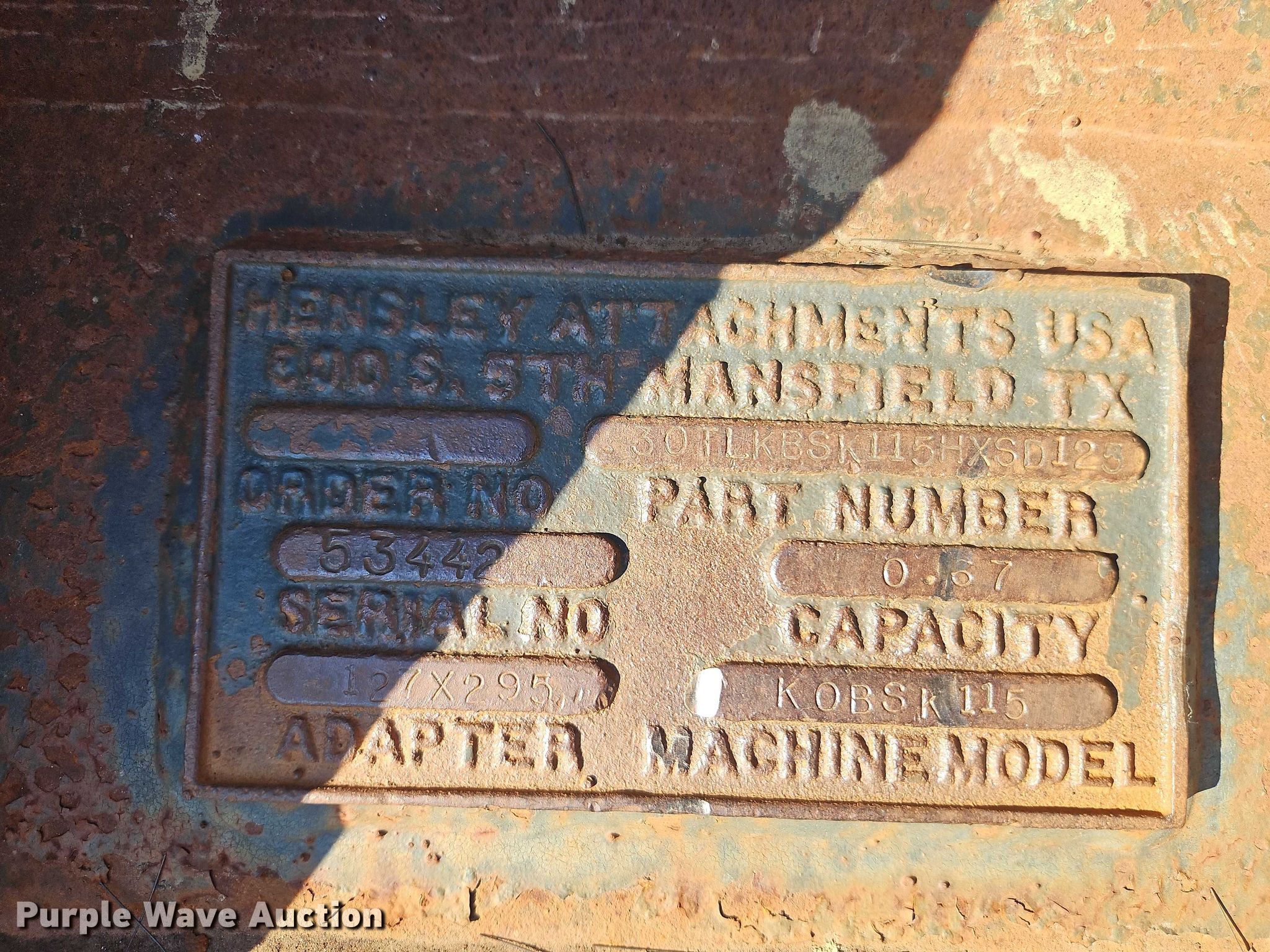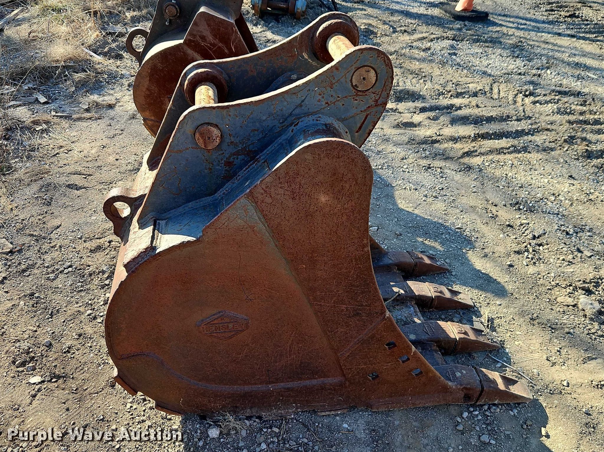 Purple Wave is selling a used Excavator Attach. in Missouri. This item is a Hensley KOBSK115 excavator bucket with the following: Serial: 53442, Capacity: 0.67 cu.yd., Width: 30", Teeth: 4, Removed from a Kobelco SK115 excavator