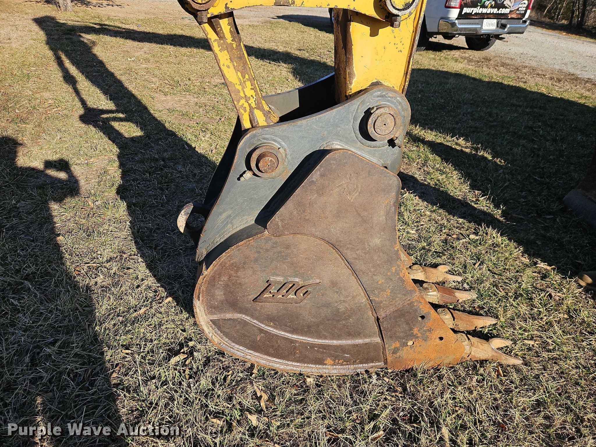 2007 John Deere 135C RTS excavator. Hours: 6,418 on meter, Serial: FF135CX300929. Engine Isuzu CC-4BG1T, Displacement: 4329 cc, Cylinders: 4, Fuel type: Diesel. Transmission Hydrostatic, Two speed travel. Operators station Enclosed cab, AC, Heat. Features Auxiliary hydraulics One-way, Counter weights, Removable, Auto lube, Backfill blade Width: 98", Boom Standard, Stick Stick length: 9' 10", Quick coupler: Hydraulic Geith, Bucket TAG, Capacity: 0.57 cu.yd., Width: 24", Teeth: 4. Tracks Width: 23.5", Steel, Grouser pads: Triple. Notes Lincoln auto lube removed but included, Geith hydraulic quick coupler removed but included, Front glass missing. Dawn and Dorsey Contracting LLC. Lone Jack, MO 64070