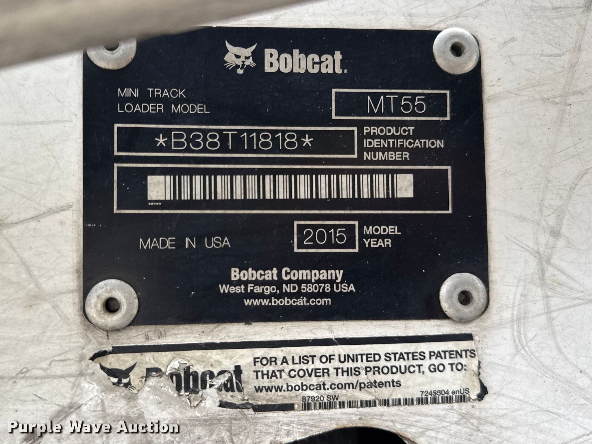Purple Wave is selling a used Compact Utility Loader in Illinois. This item is a 2015 Bobcat MT55 compact utility loader with the following: Hours: 589 on meter, Serial: B38T11818