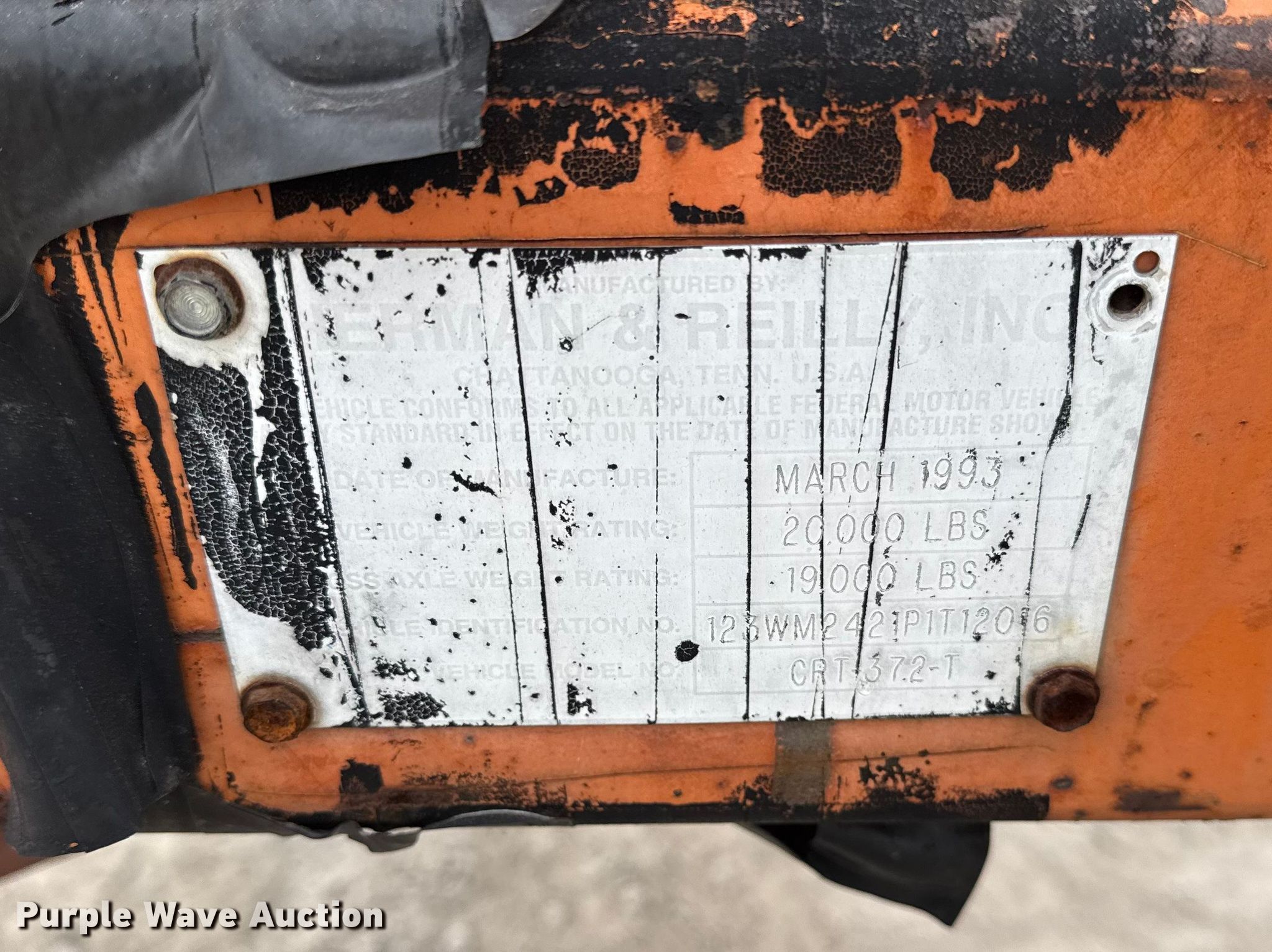 Purple Wave is selling a used Reel Trailer in Illinois. This item is a 1993 Sherman & Reilly CRT-372-T reel trailer with the following: VIN: 123WM2421P1T1206