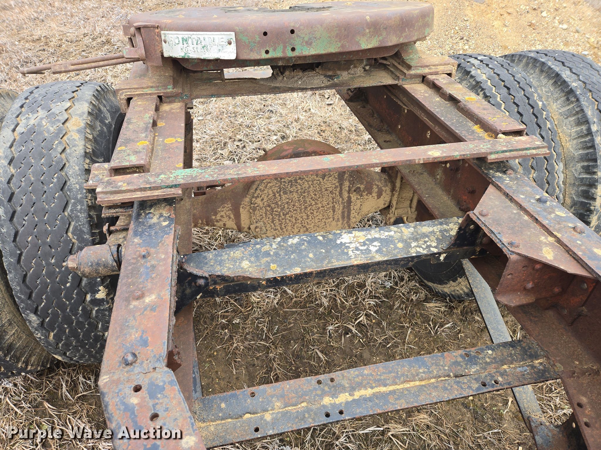 Fontane trailer dolly. Chassis. Hitch: Pintle, Landing gear: Single, Suspension: Spring. Tires Steel wheels, Size: 11.00-20. This is worksite support equipment and will not come with a title. Transfer of ownership documentation will be a bill of sale. Liberty Dirtwork LLC. Carson, ND 58529