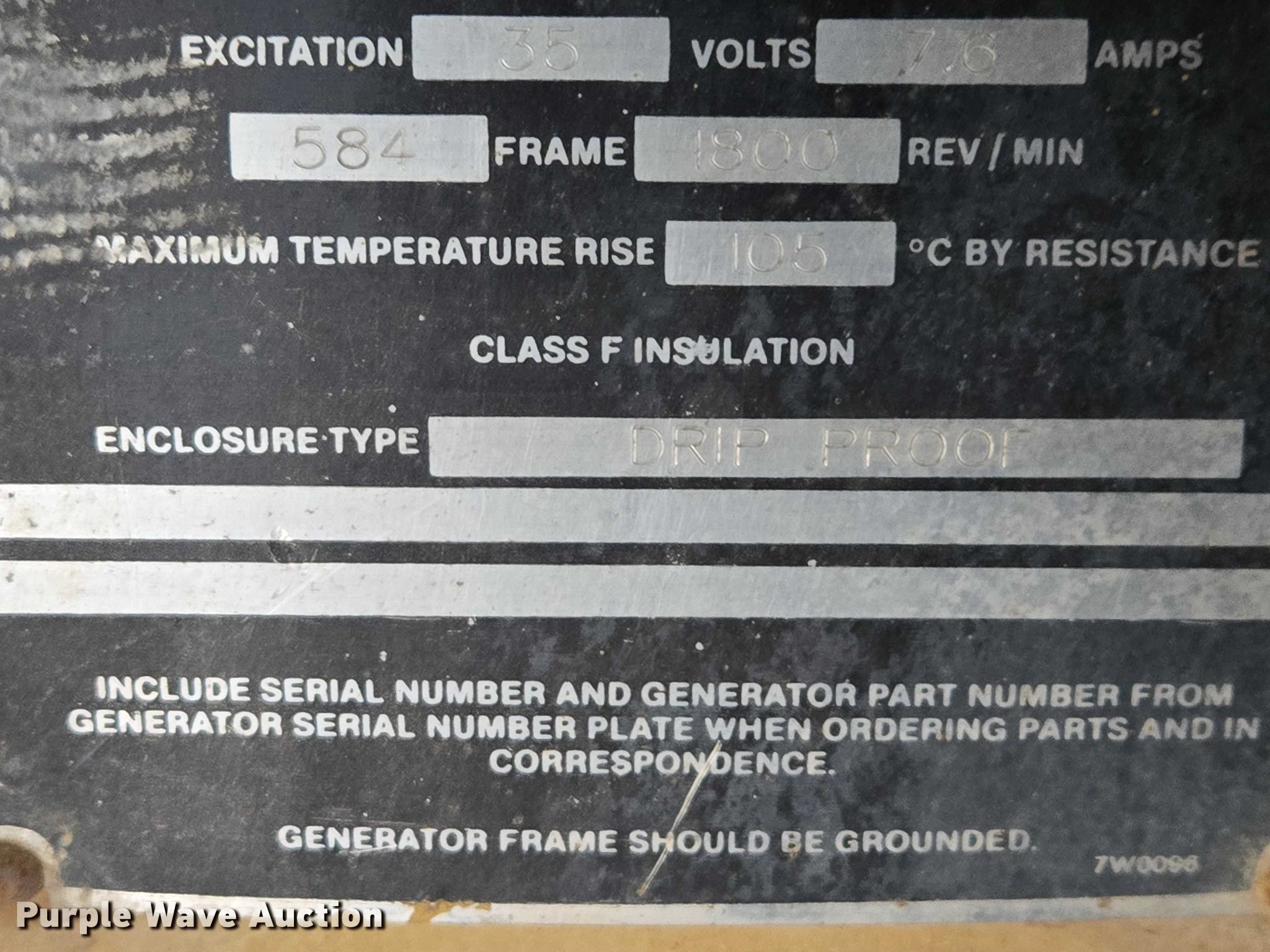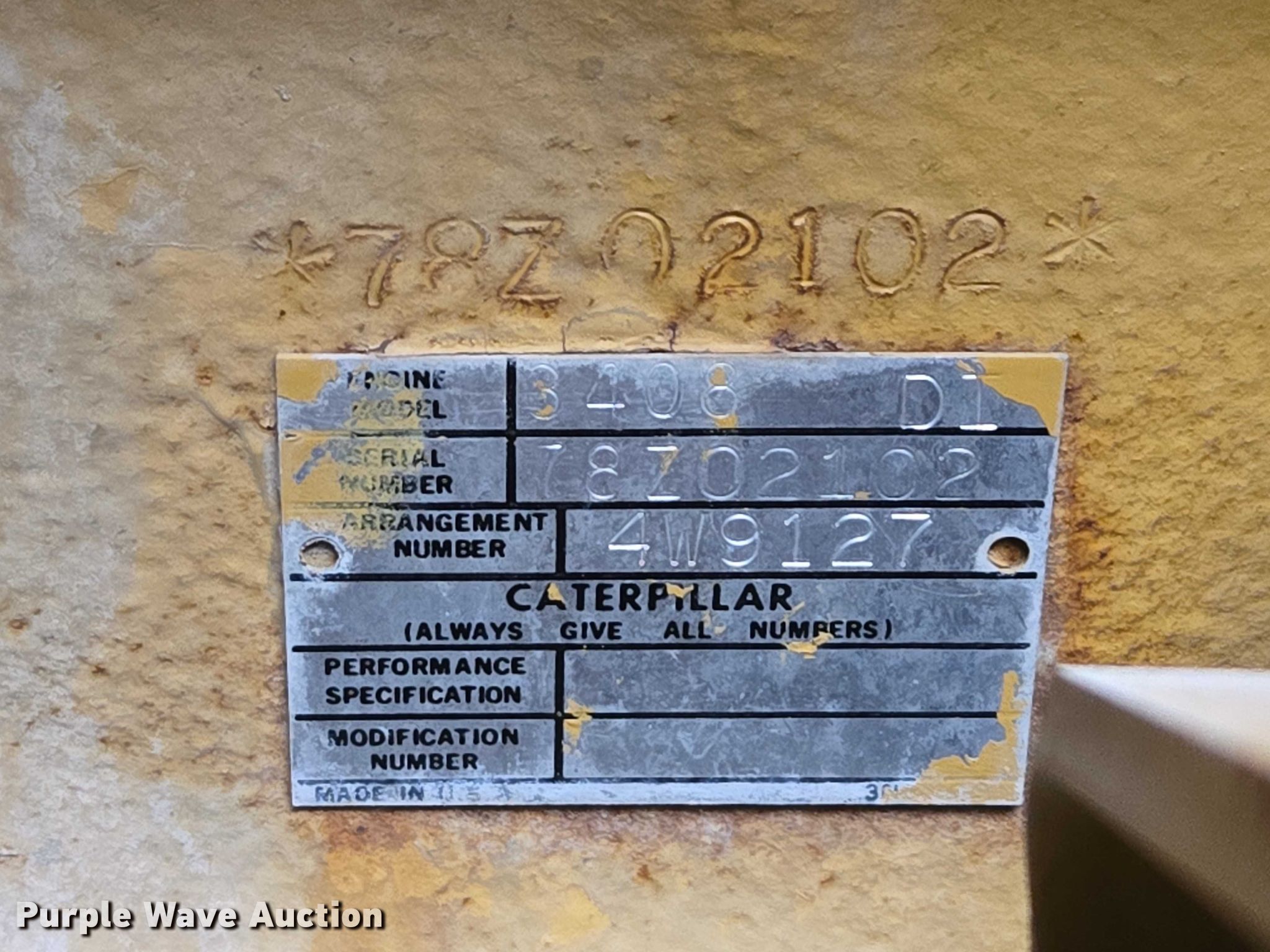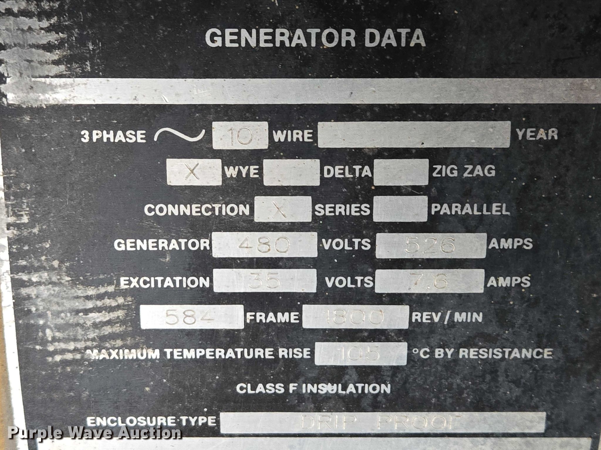 1987 Caterpillar SR-4 generator. Hours: 12,956 on meter, VIN: 78Z02102. Engine Caterpillar 3408, Cylinders: 8, Fuel type: Diesel. Features Generator Caterpillar SR-4, kVA: 438, kW: 350, Phase: Three, Electric start, Fuel tank Fuel capacity: 2000 gallons.. Trailer Suspension: Spring, Brakes: Hydraulic, Axles: Single, Tire size: 10.00-15. This is worksite support equipment and will not come with a title. Transfer of ownership documentation will be a bill of sale. Liberty Dirtwork LLC. Elgin, ND 58533