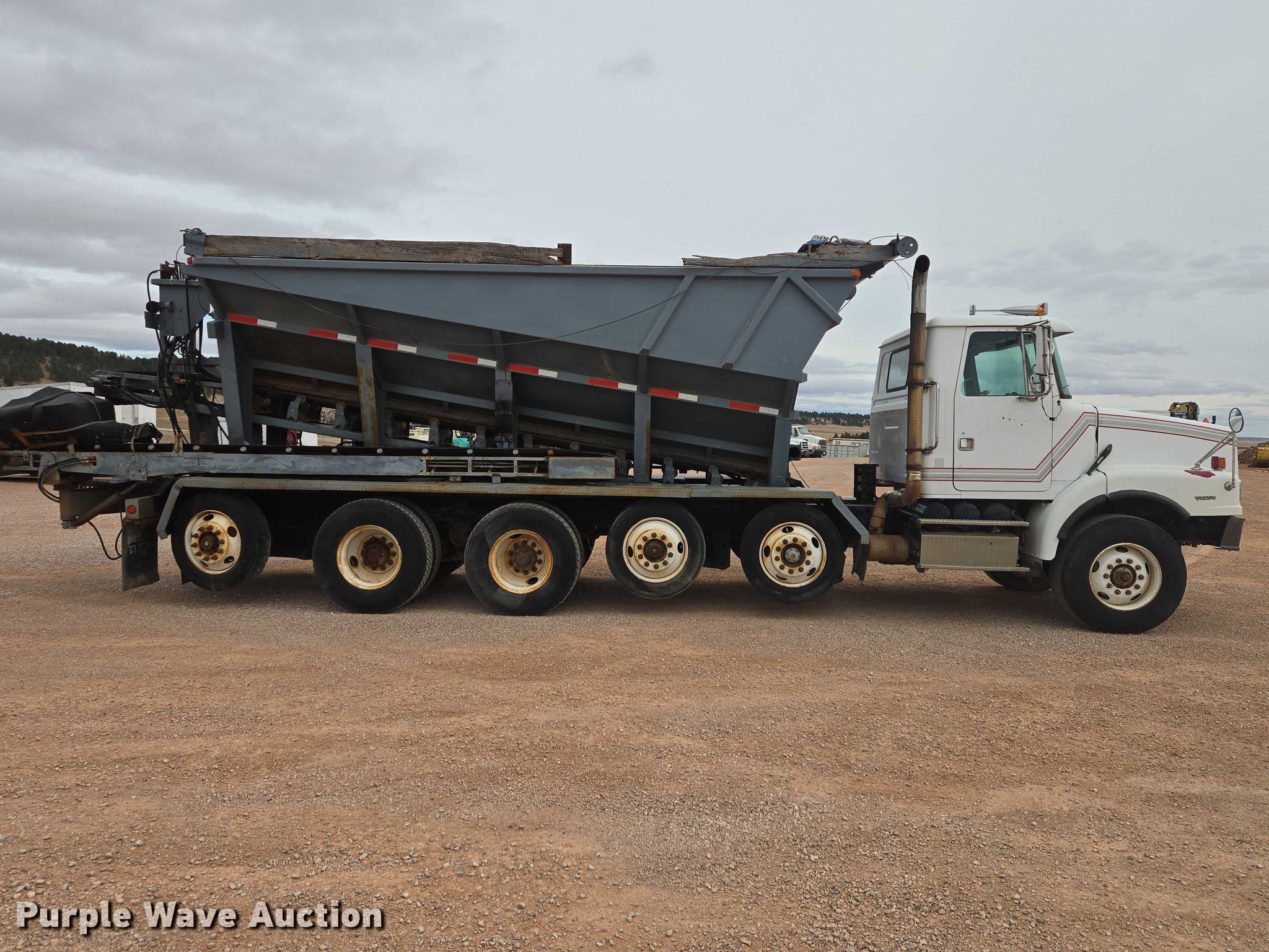Purple Wave is selling a used Construction Dump Truck in South Dakota. This item is a 1999 Volvo WG rock slinger with the following: Miles: 1,085 on odometer, Actual miles: Unknown, Hours: 197 on meter, Hours: 1256 on second meter, VIN: 4VHJCCJF7XN867721