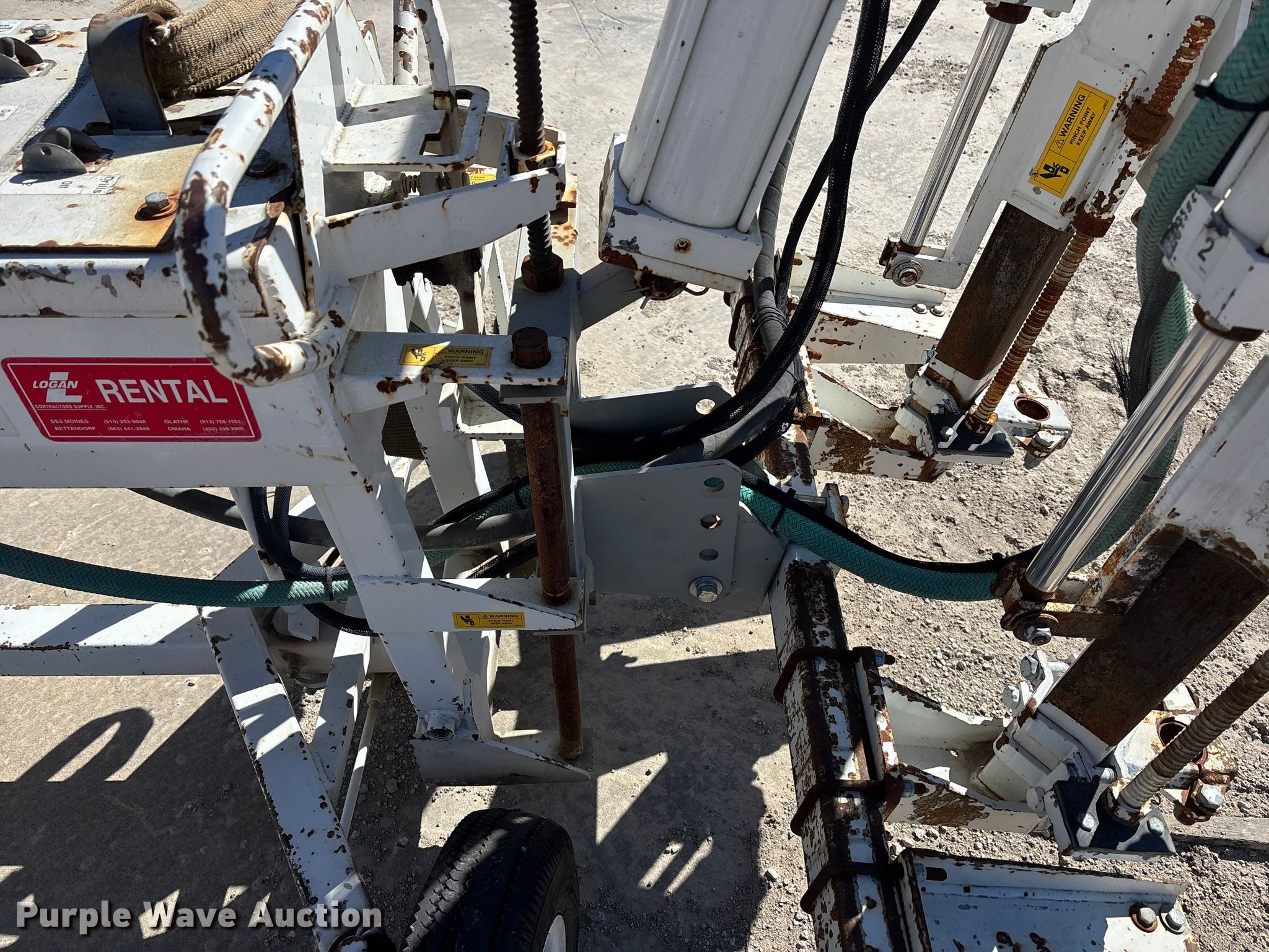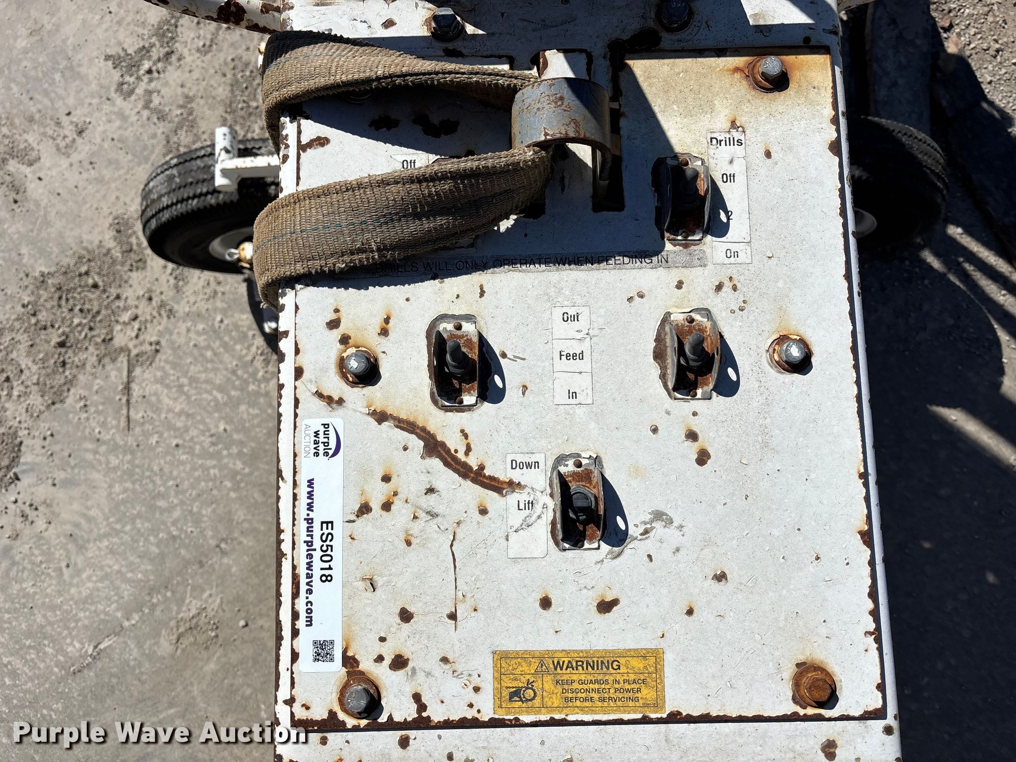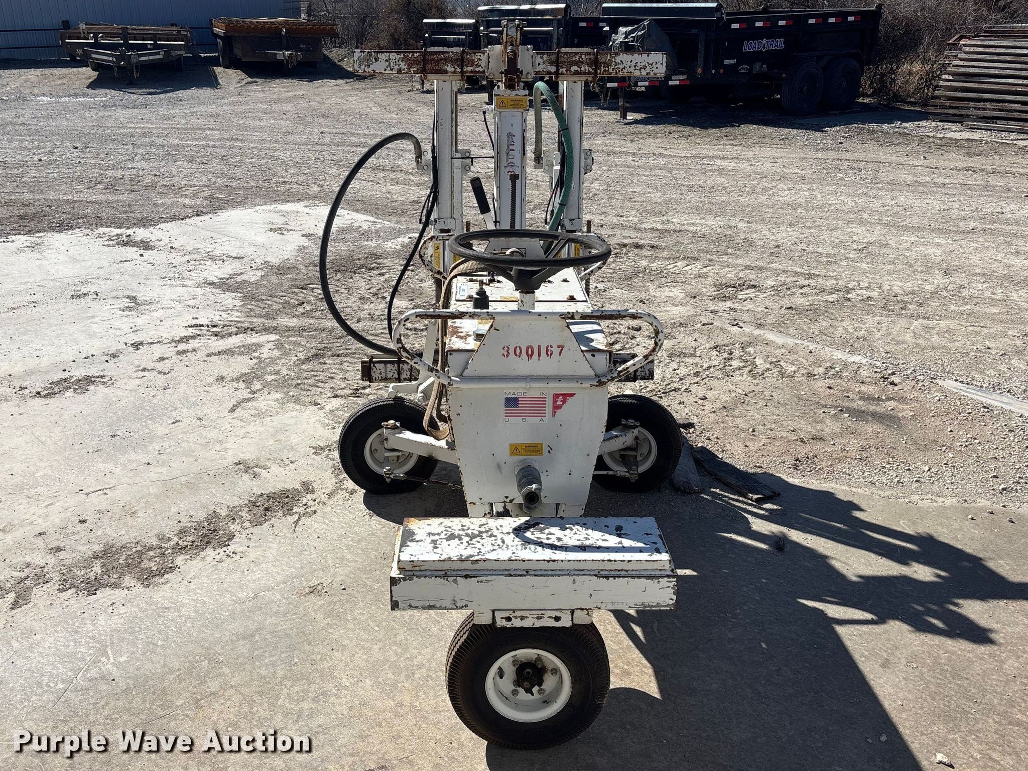 Minnich A-2C dowel pin drill. Serial: 104-3883-30. Tires Size: 5.30-4.5-6. SeCon Construction, Inc.. Oak Grove, MO 64075