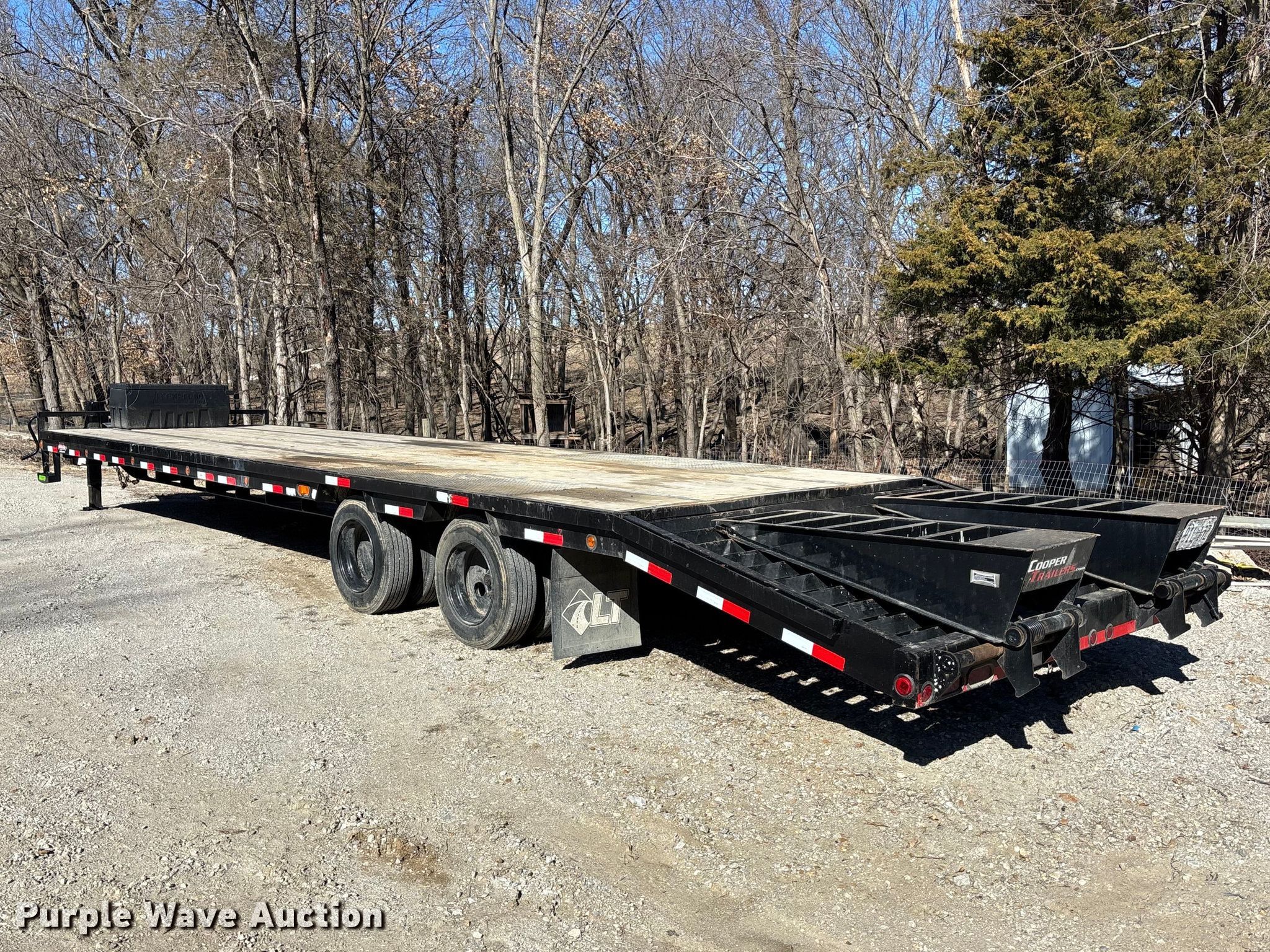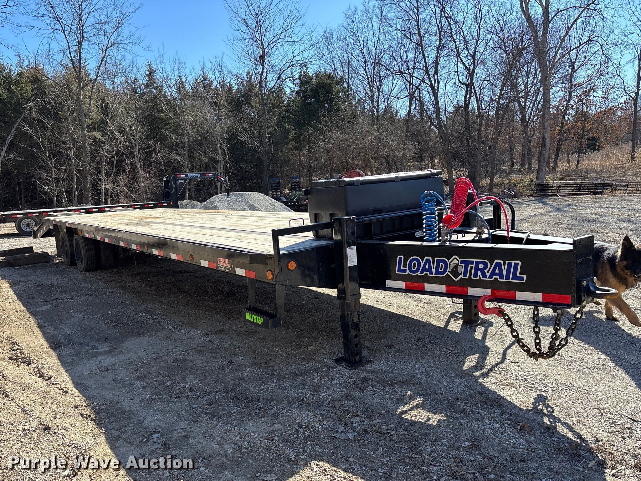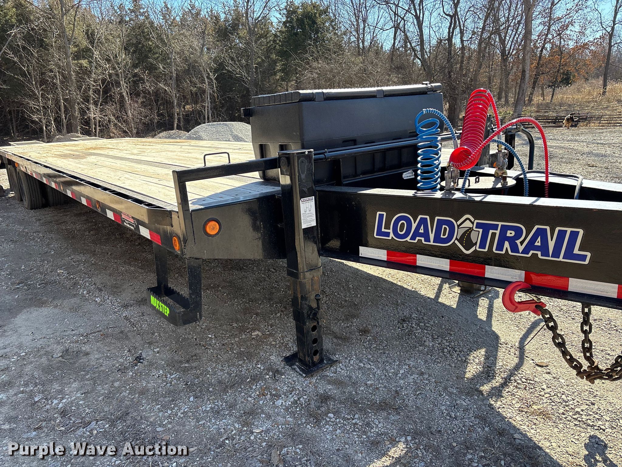 202 Load Trail Low Pro equipment trailer. VIN: 4ZEPP3529N1269682. Dimensions Overall Length: 40', Width: 101", Deck Length: 35', Width: 101", Top deck length: 30', Tail length: 5', Ramps: Manual Length: 5'. Features Deck type: Wood. Chassis Hitch: Gooseneck, Landing gear: Dual, Suspension: Spring, Brakes: Air, Axles: Tandem, GVWR: 40,000 lbs. Tires Steel wheels, Size: 215/75R17.5. Notes Storage box not included. Missouri title. Title distribution may be delayed up to 14 days from verification of funds. SeCon Construction, Inc.. Oak Grove, MO 64075