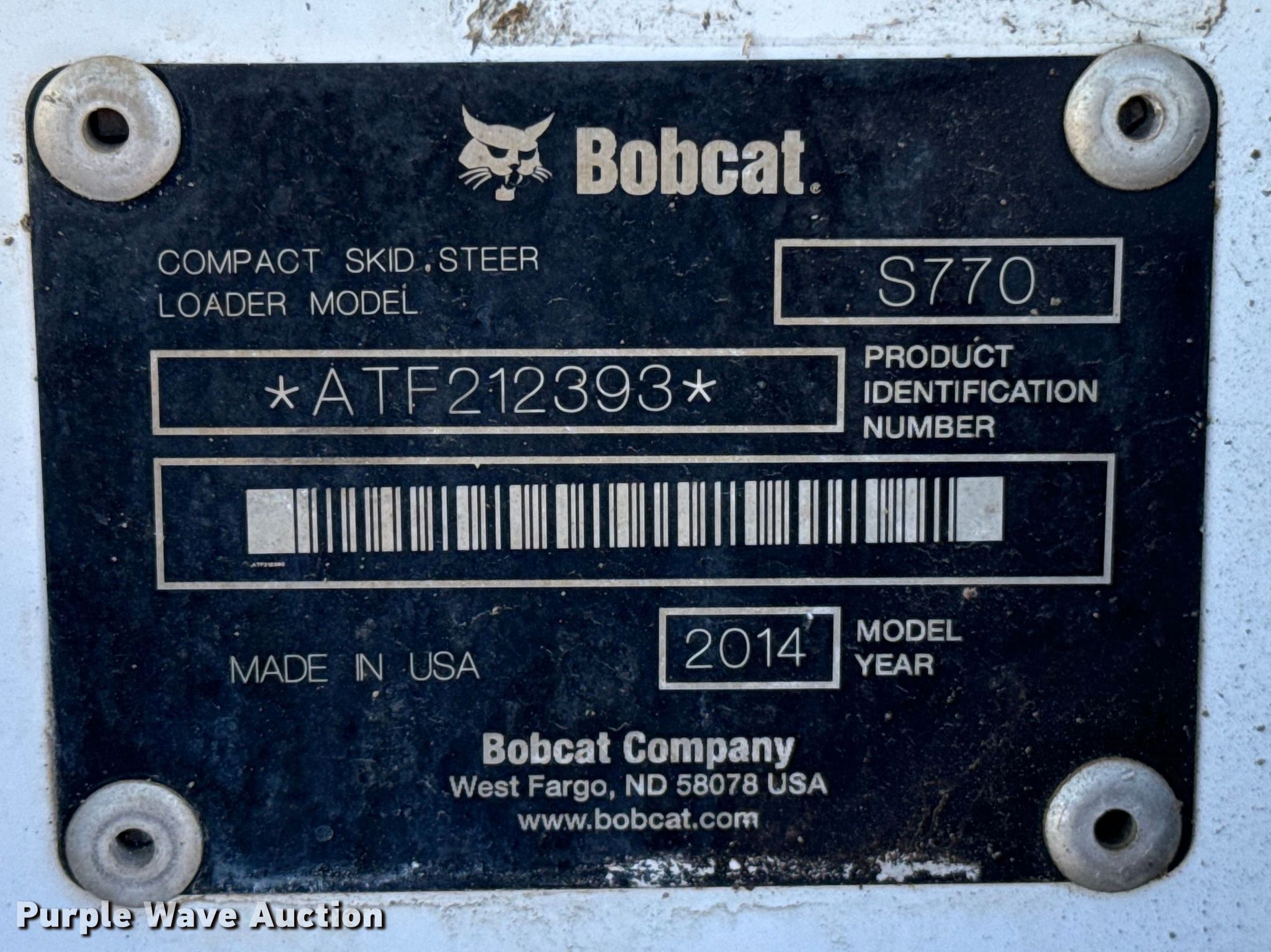 Purple Wave is selling a used Skid Steer Loader in Oklahoma. This item is a 2014 Bobcat S770 skid steer loader with the following: Hours: 5,223 on meter, Serial: ATF212393, Unit #: 564-254