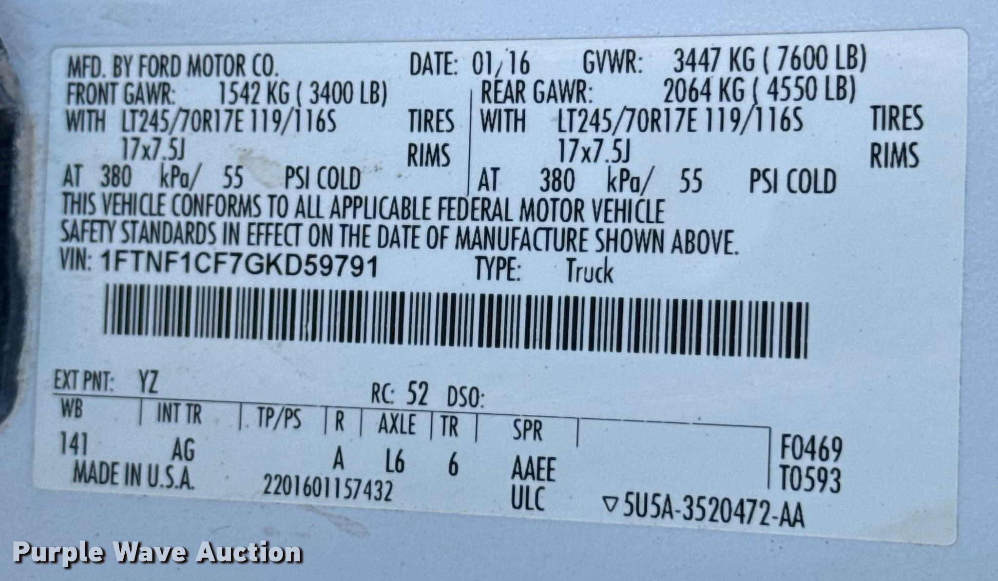 - VIN: 1FTNF1CF7GKD59791